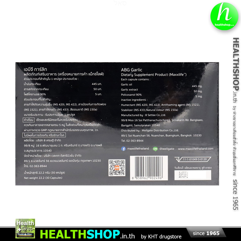 MAXXLIFE ABG Garlic 30 Capsules ( กระเทียม Policosanol )