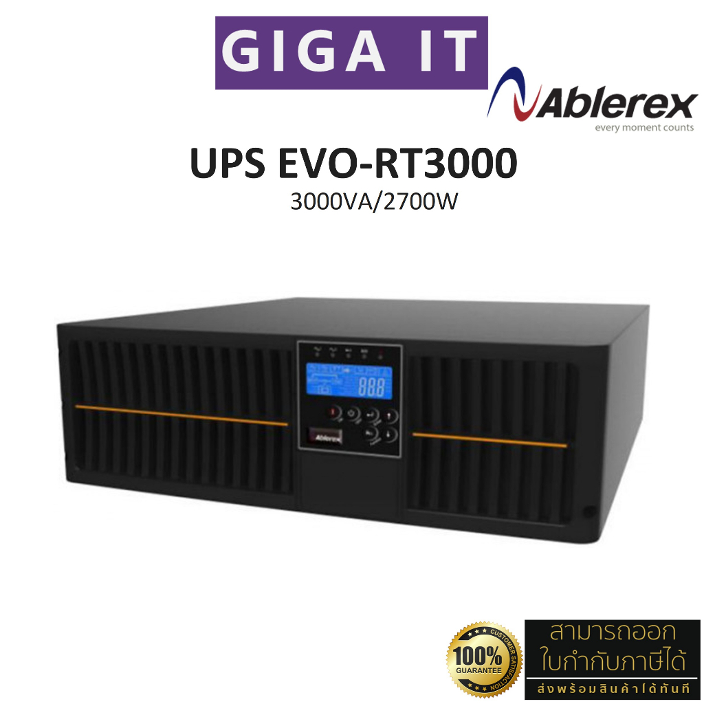 ABLEREX-EVO-RT3000 (3000VA/2700W) True online double conversion with LCD display, rack type ประกันศูนย์ Onsite 3 ปี