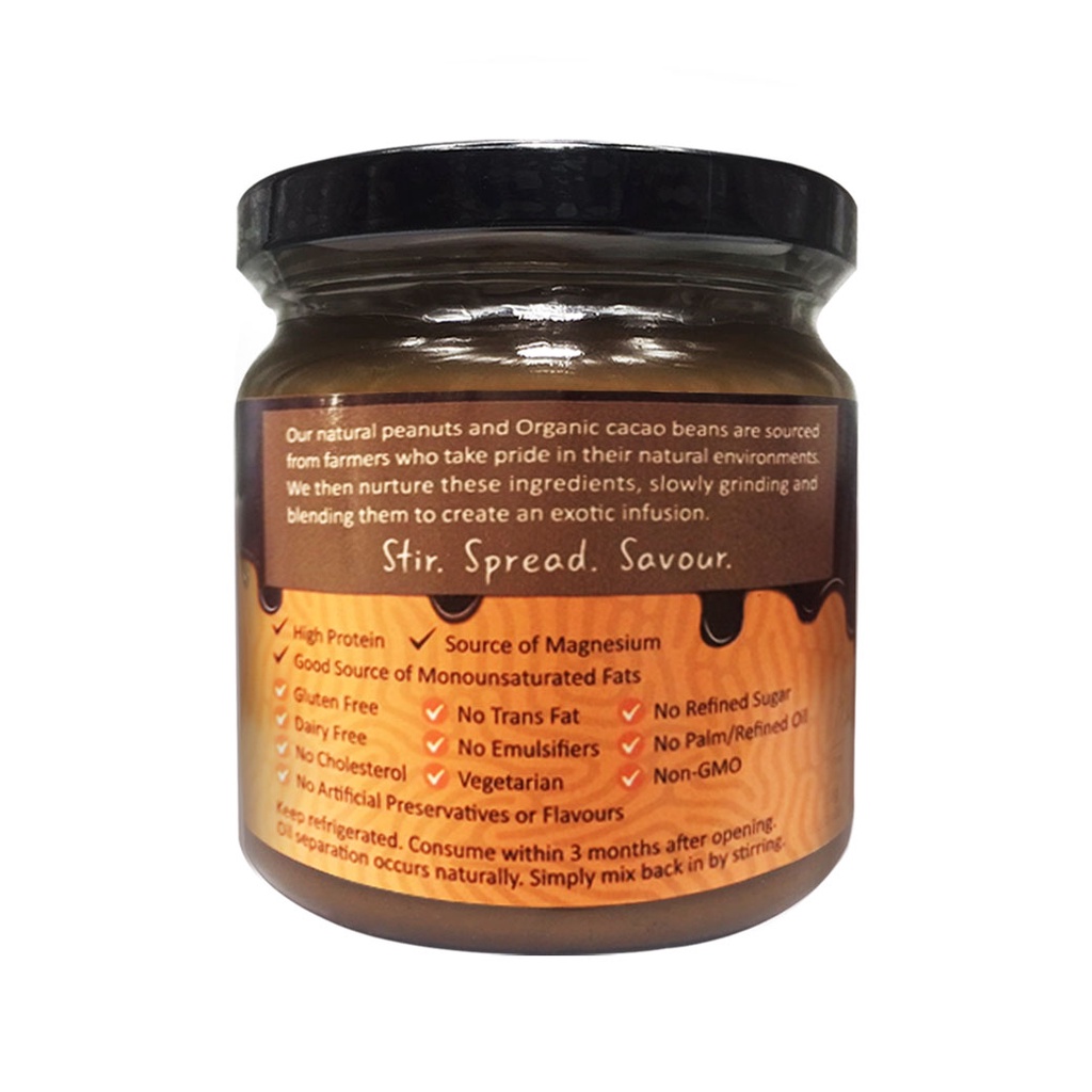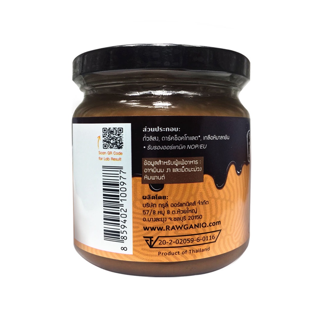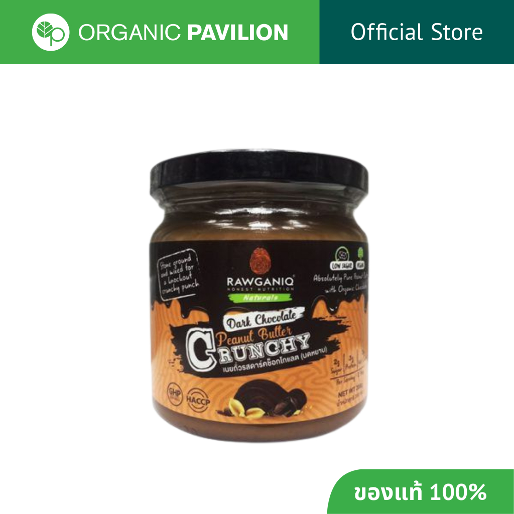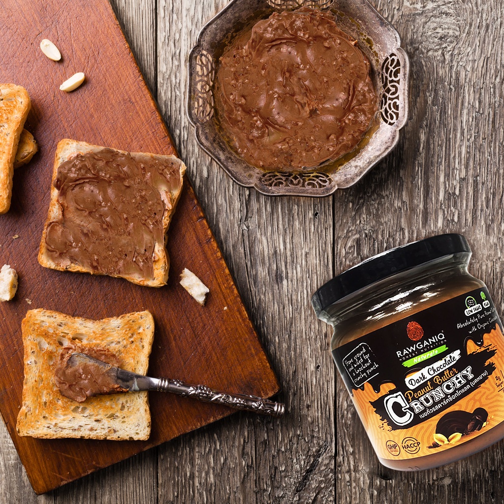 Rawganiq Dark Chocolate Peanut Butter - Crunchy เนยถั่วลิสงรสดาร์คช็อคโกแลต - บดหยาบ (200 g)