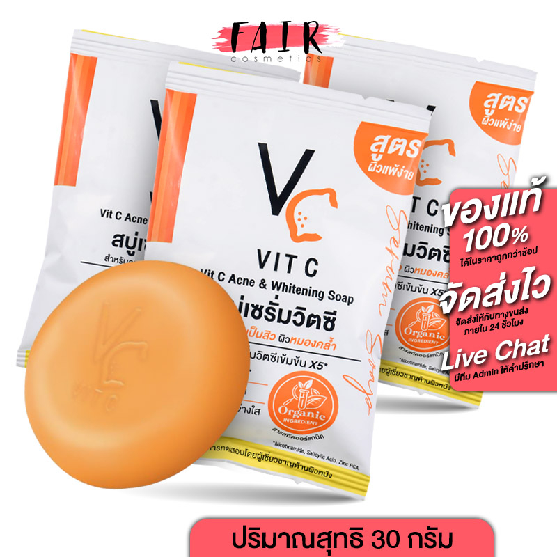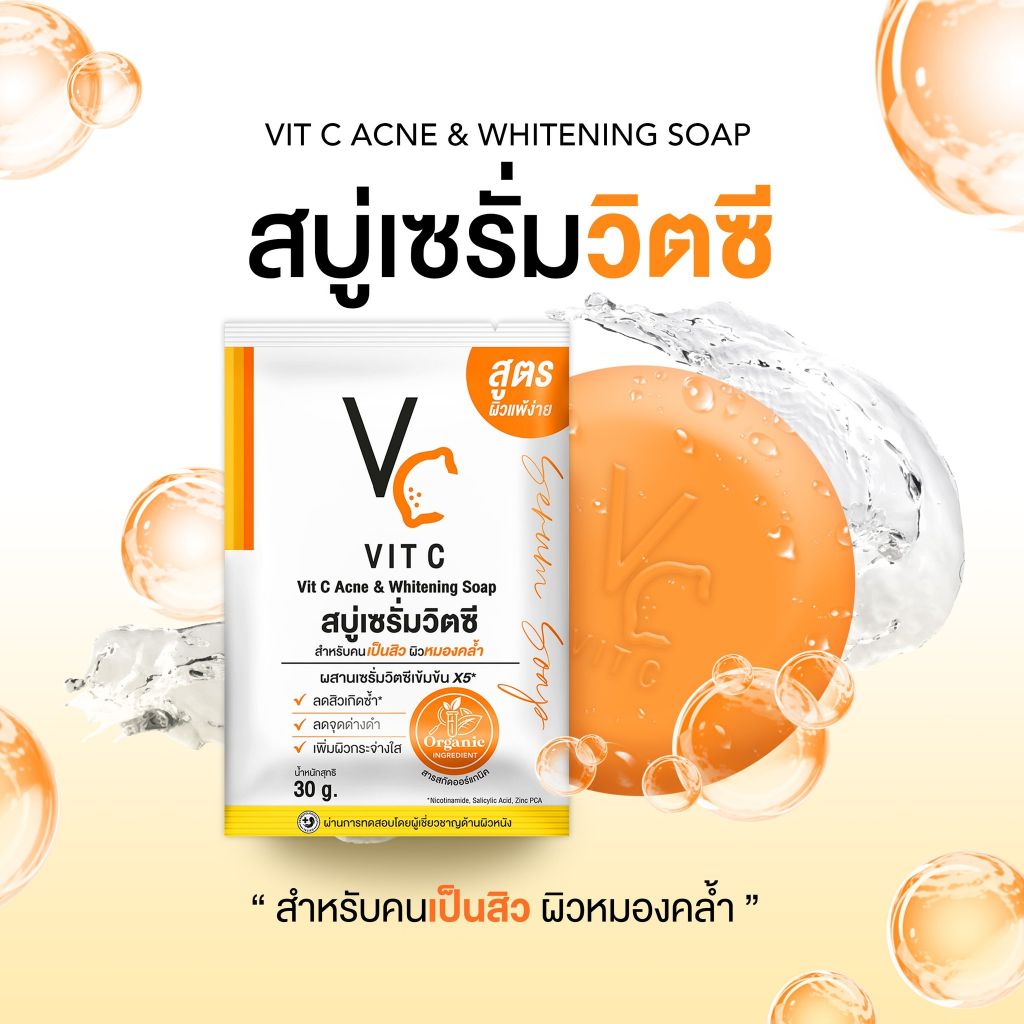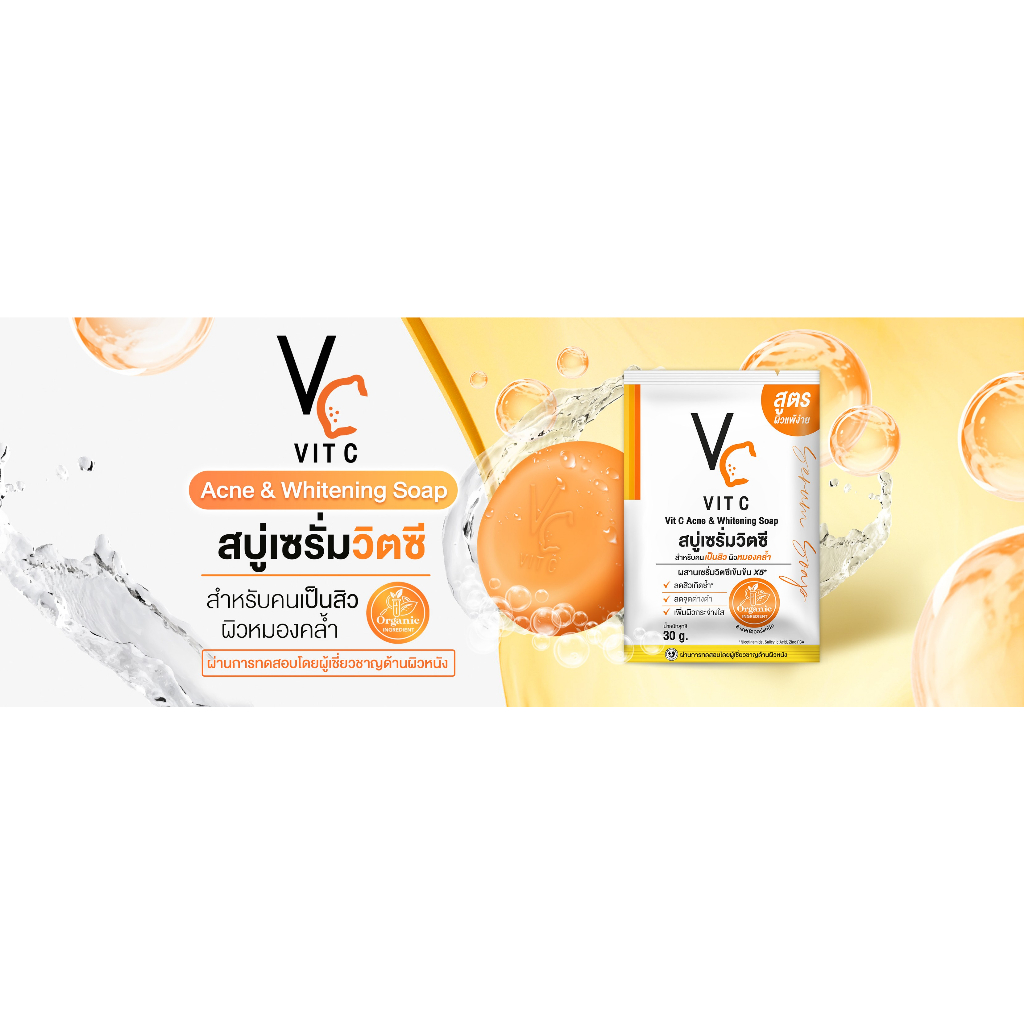 [3 ก้อน] สบู่ วิตามินซี Ratcha Vit C Acne & Whitening Soap รัชชา วิตซี แอคเน่ & ไวท์เทนนิ่ง โซฟ [30 กรัม]