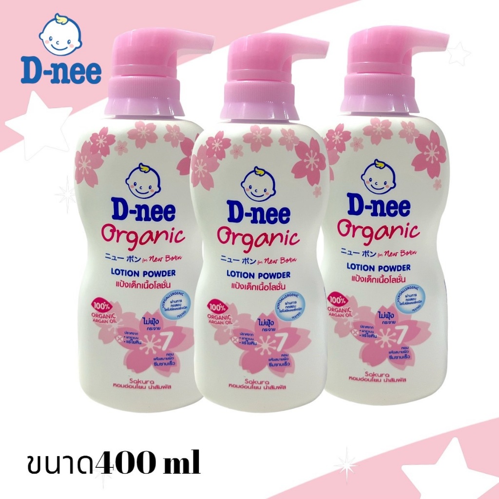 D-Nee ดีนี่ แป้งเด็กเนื้อโลชั่น หัวปี๊ม สีชมพู ซากุระ ขนาด 400 มล. จำนวน1ขวด