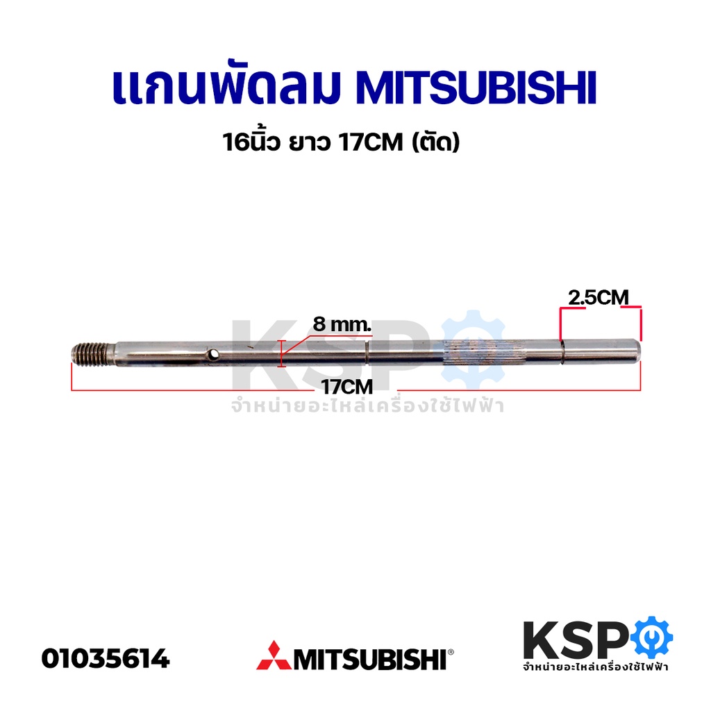 แกนพัดลม ติดผนัง ตั้งพื้น 16" นิ้ว MITSUBISHI มิตซูบิชิ 8mm ยาว 17cm (แกนตัดรุ่นใหม่) อะไหล่พัดลม