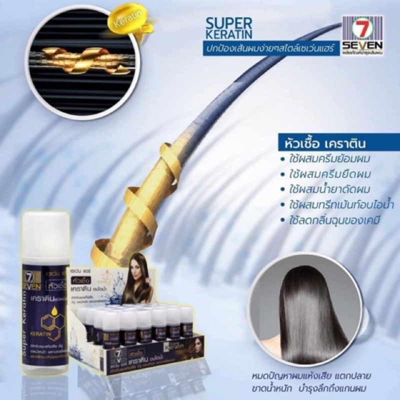👍👍👍หัวเชื้อเคราติน เซเว่น แฮร์ เป็นหัวเชื้อเคราตินใช้ผสม ยืด ดัด ย้อม กันผมเสีย ลดกลิ่นเคมีขวดละ15ml