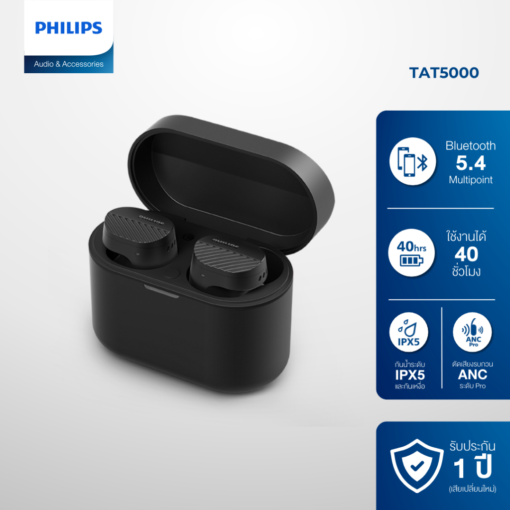 Philips หูฟังไร้สาย TRUE WIRELESS (5000 series) ใช้งาน 40 ชั่วโมง ตัดเสียงรบกวน ANC - TAT5000