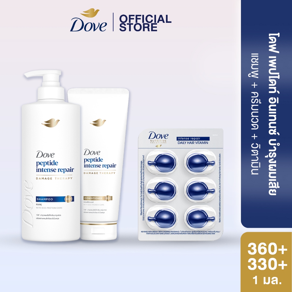 โดฟ แชมพู+คอนดิชันเนอร์ เพปไทด์ อินเทนซ์ รีแพร์ 360มล+330มล+วิตามิน 1มล. Dove Peptide Intense Repair 360ml & 330ml + Vit