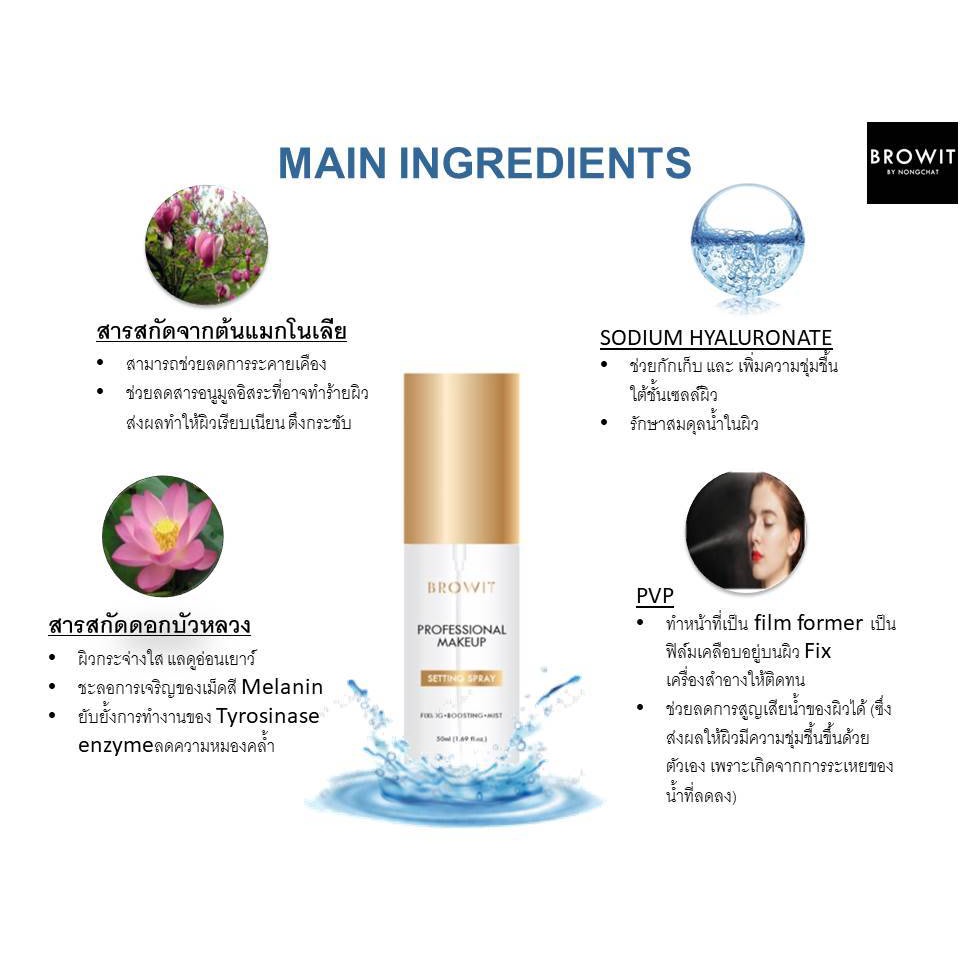 Browit By Nongchat Professional Makeup Setting Spray 50ml. บราวอิท โปรเฟสชั่นนอลเมคอัพเซ็ตติ้งสเปรย์