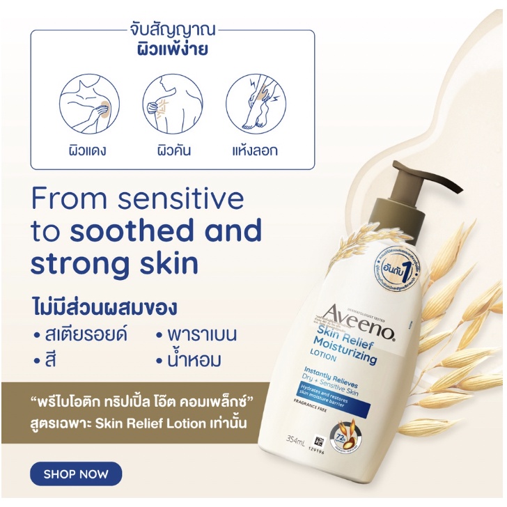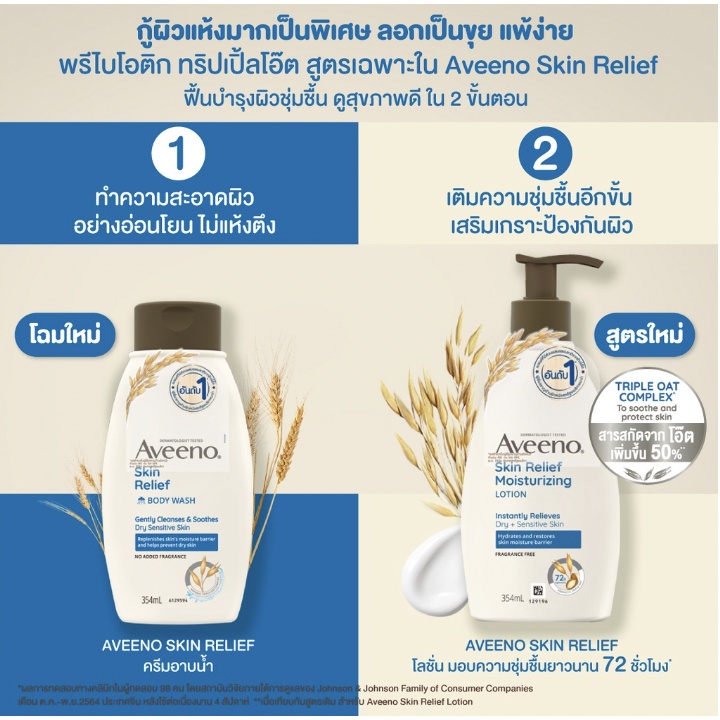 Aveeno Skin Relief Moisturizing Lotion อาวีโน่ สกิน รีลีฟ มอยส์เจอร์ไรซิ่ง โลชั่น สูตรผิวแห้ง สีน้ำเงิน