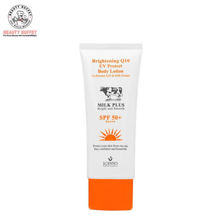 [แพ็ค 2 หลอด] BEAUTY BUFFET SCENTIO MILK PLUS BRIGHTENING Q10 UV PROTECT BODY LOTION SPF 50 +PA++ ไวท์เทนนิ่งคิวเทน ยูวี