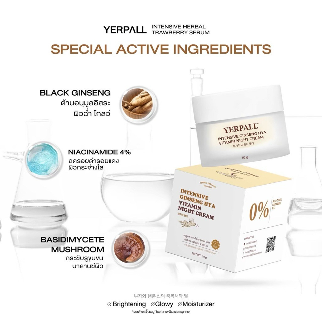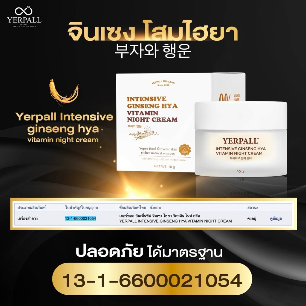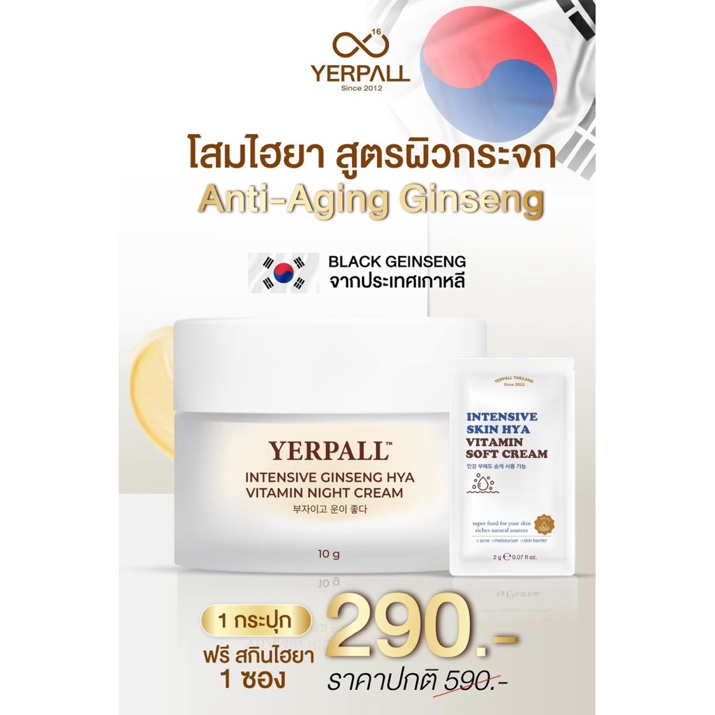 (หน้าไลฟ์เหลือ190บาท) โสมไฮยาYerpall สูตรผิวกระจก หน้าขาว กระจ่างใส ฝ้าจาง ลดริ้วรอย กระชับรูขุมขน