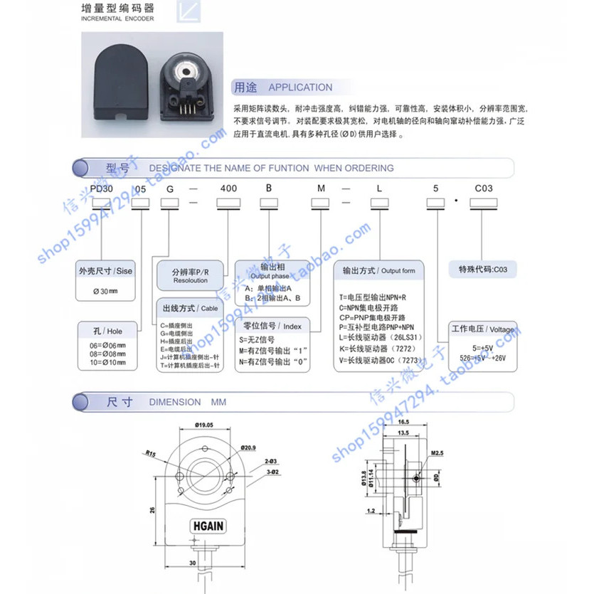 Grating Read Head HEDS-9731 # B50 1000 Line Head Disk Shell Line Encoder 24V Open Collector