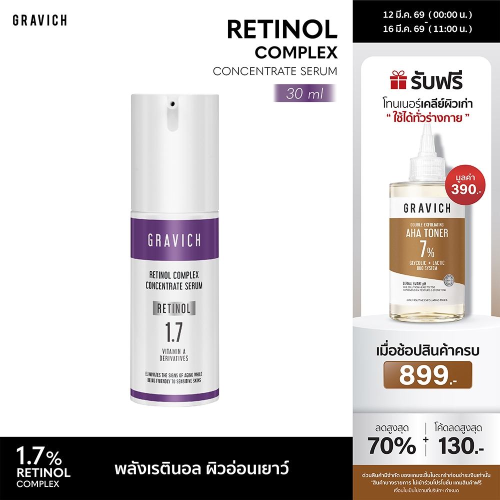 [ซื้อคู่ ถูกกว่า] Gravich Retinol Complex Concentrate Serum 30 ml เซรั่มเรตินอล 1.7%