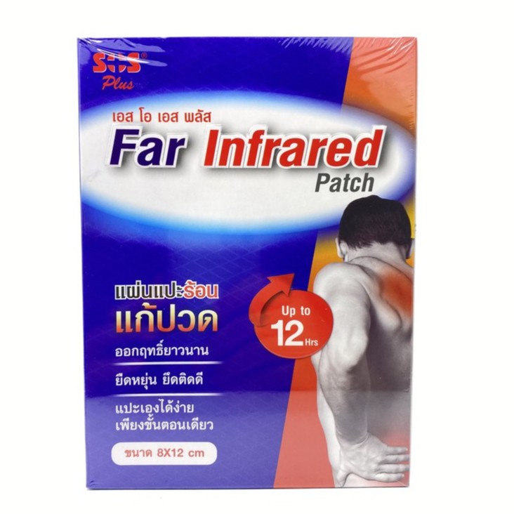 [4ซอง8ชิ้น]SOS Far Infrared Patch เอส โอ เอส พลัส 8x12cm.4ซอง8ชิ้น แผ่นแปะร้อน แก้ปวด ยืดหยุ่น #8865