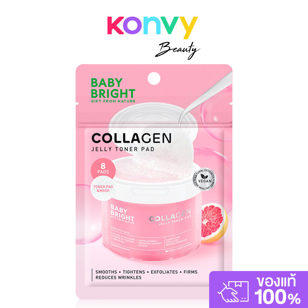 Baby Bright Collagen Jelly Toner Pad 8 Pads โทนเนอร์แพดผิวไบร์ท สูตรวีแกน เบบี้ ไบร์ท.