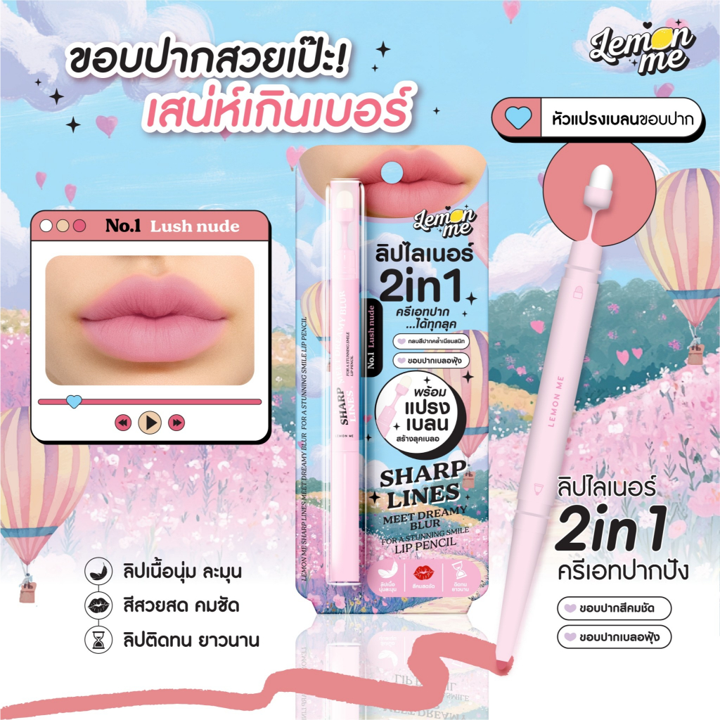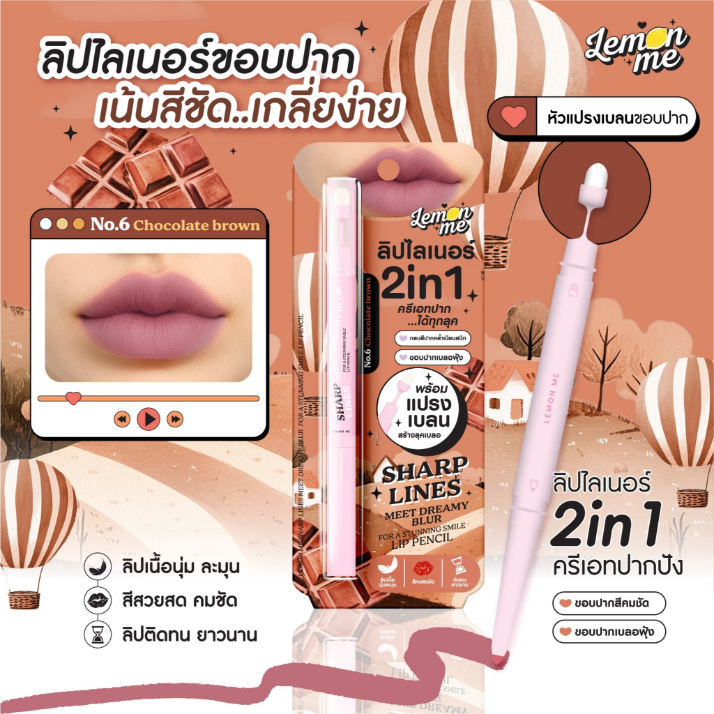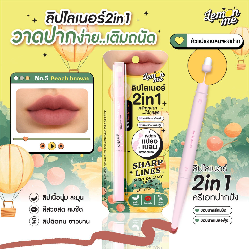 Lemon Me เลม่อนมี Sharp line meet dreamy blur 2in1 #ลิปไลน์เนอร์ หัวลิปพร้อมแปรงเบลน #ครีเอทปากได้ทุกลุค