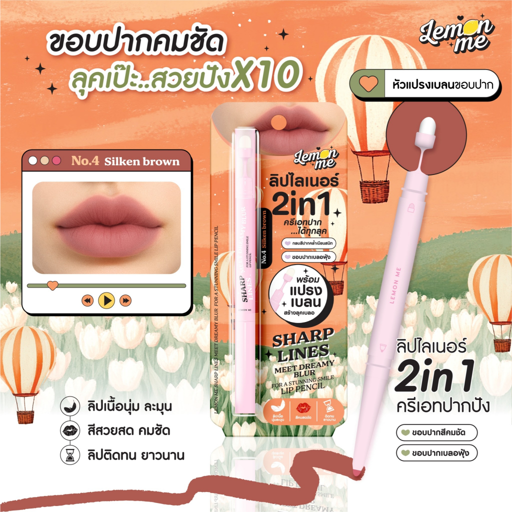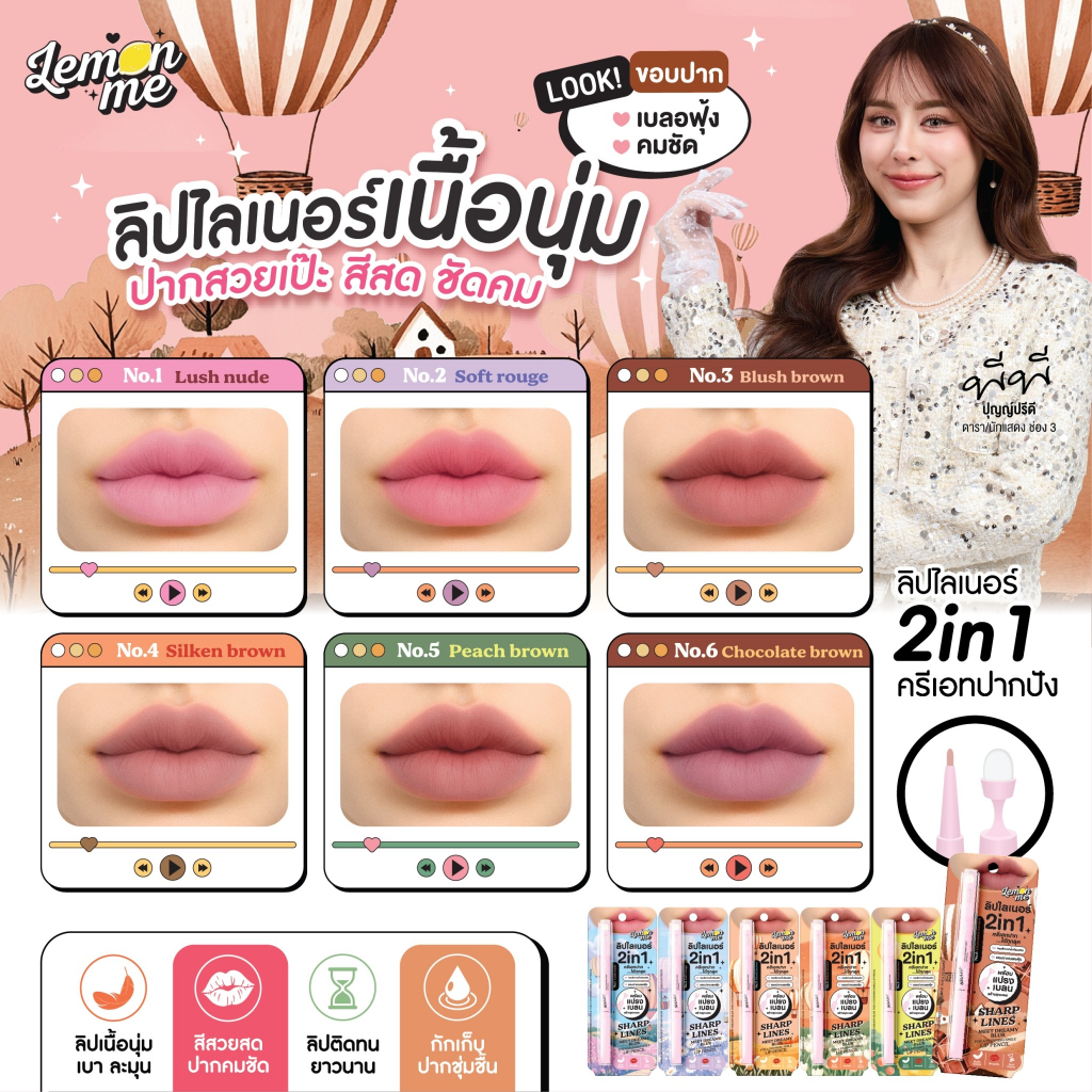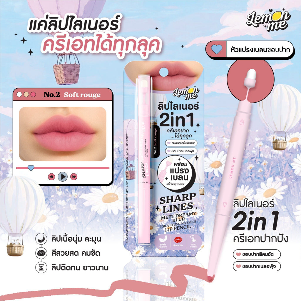 Lemon Me เลม่อนมี Sharp line meet dreamy blur 2in1 #ลิปไลน์เนอร์ หัวลิปพร้อมแปรงเบลน #ครีเอทปากได้ทุกลุค