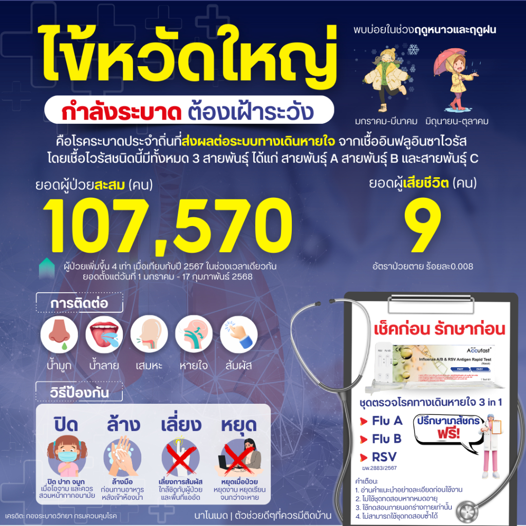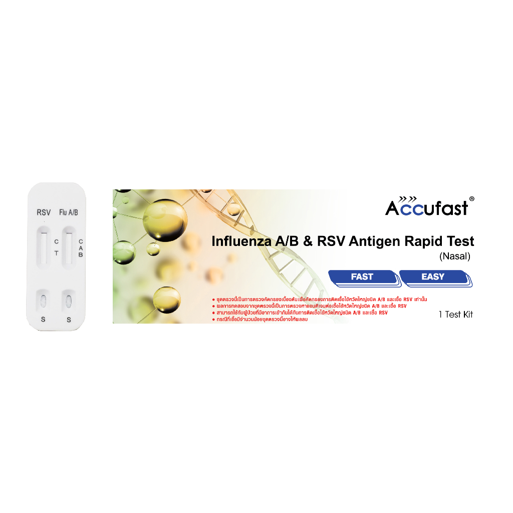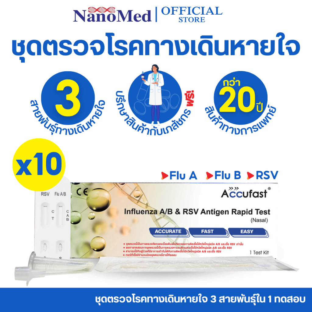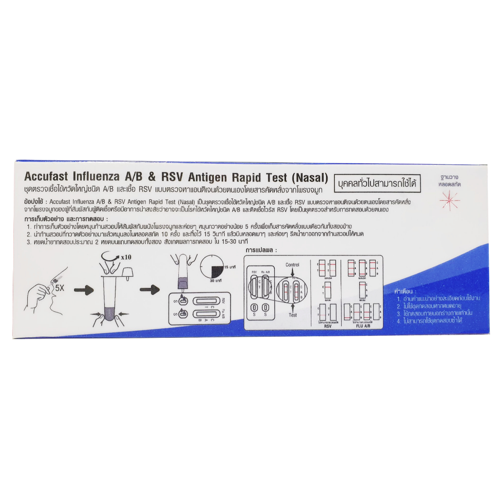 (10 ชิ้น) ชุดตรวจไข้หวัดใหญ่ สายพันธุ์ A/ B (FluA/B) และ RSV แบบตรวจหาแอนติเจนด้วยตนเอง แหย่จมูก
