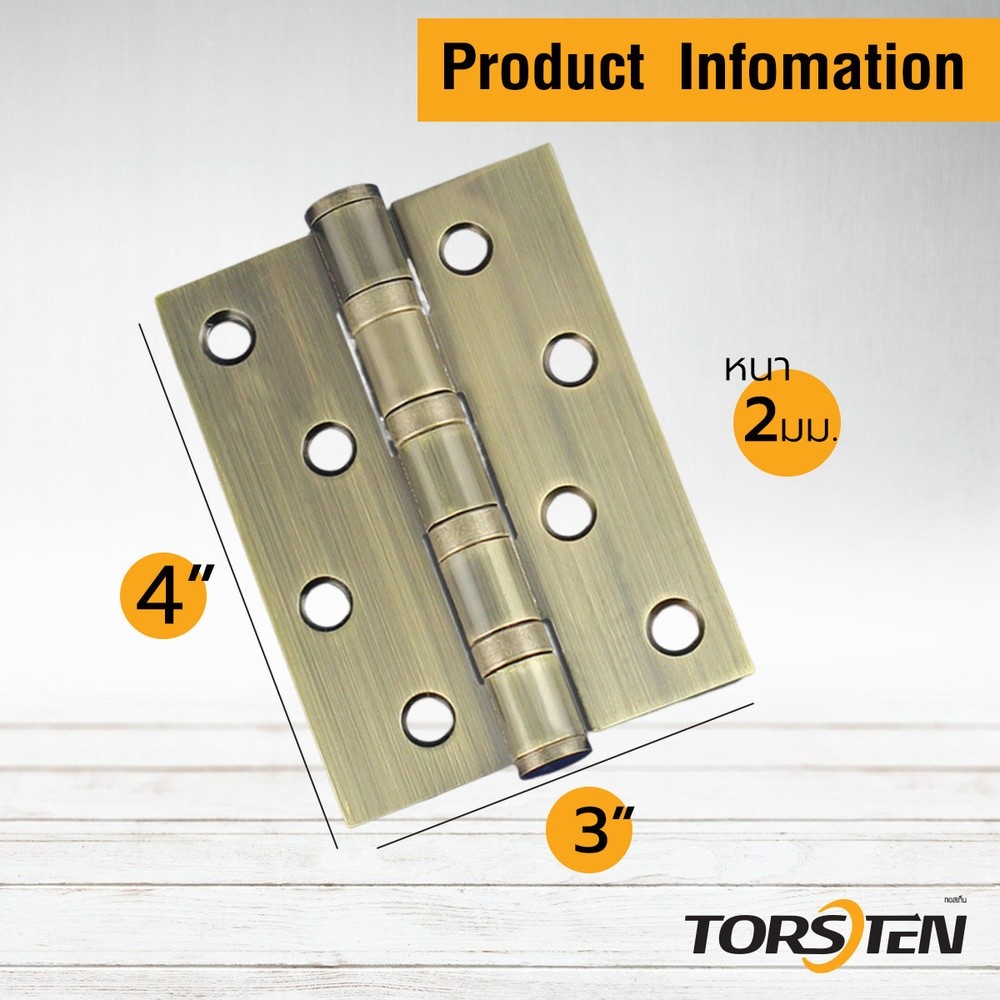 GlobalHouse TORSTEN บานพับสเตนเลส 4x3x2มม. 2ชิ้น สีทองเหลืองรมดำ สินค้าของแท้คุณภาพดี