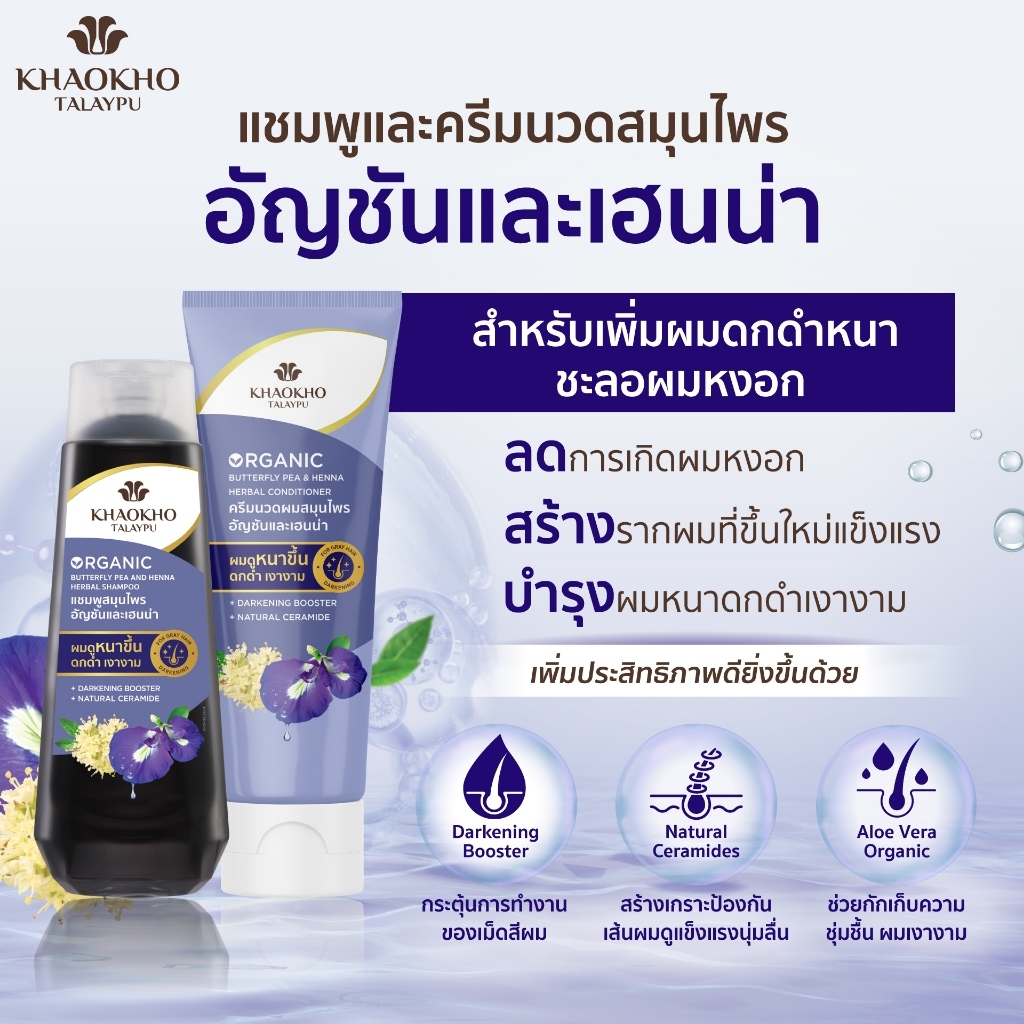 Khaokho Talaypu เขาค้อทะเลภู แชมพู และครีมนวด สูตรอัญชันและเฮนน่า ช่วยลดผมหงอก (450 + 280 มล.)