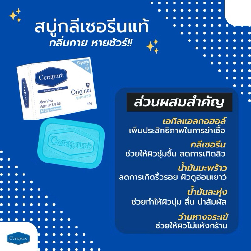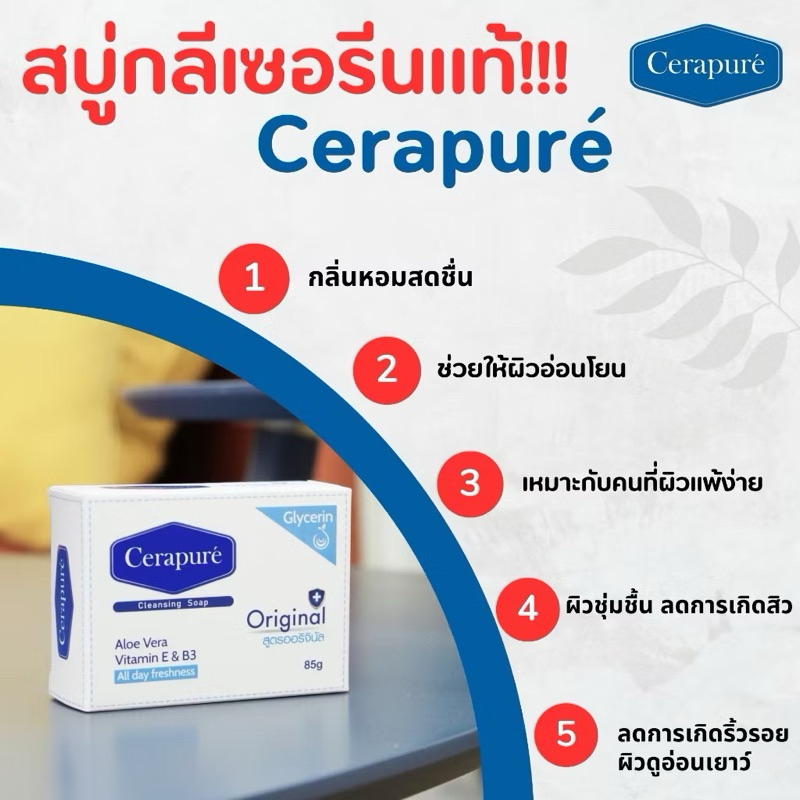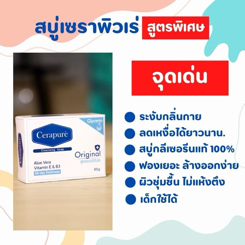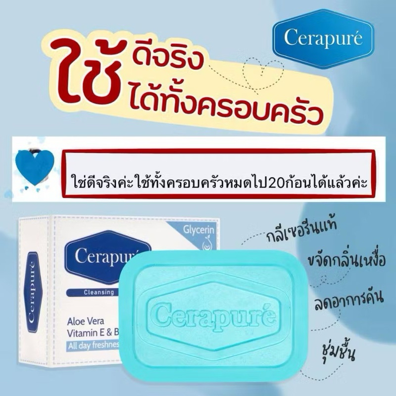 สบู่ Cerapure (เซราเพียวเร่) สบู่อาบน้ำ ลดสิว ระงับกลิ่นกาย สูตรออริจินอล ขนาด 85 กรัม