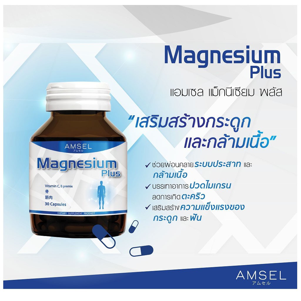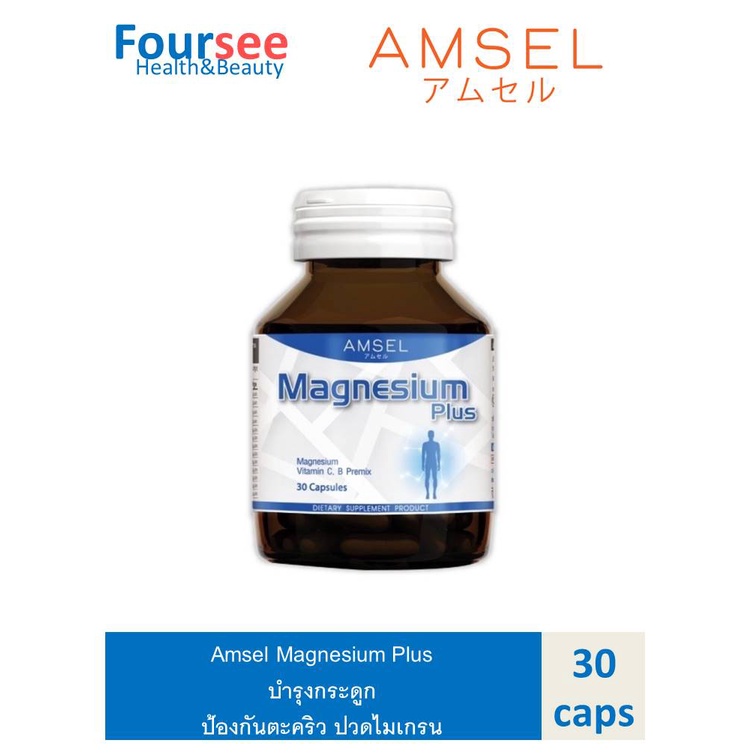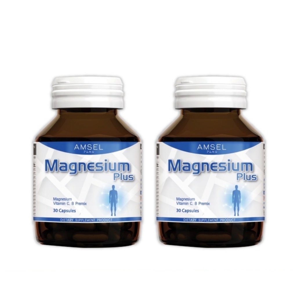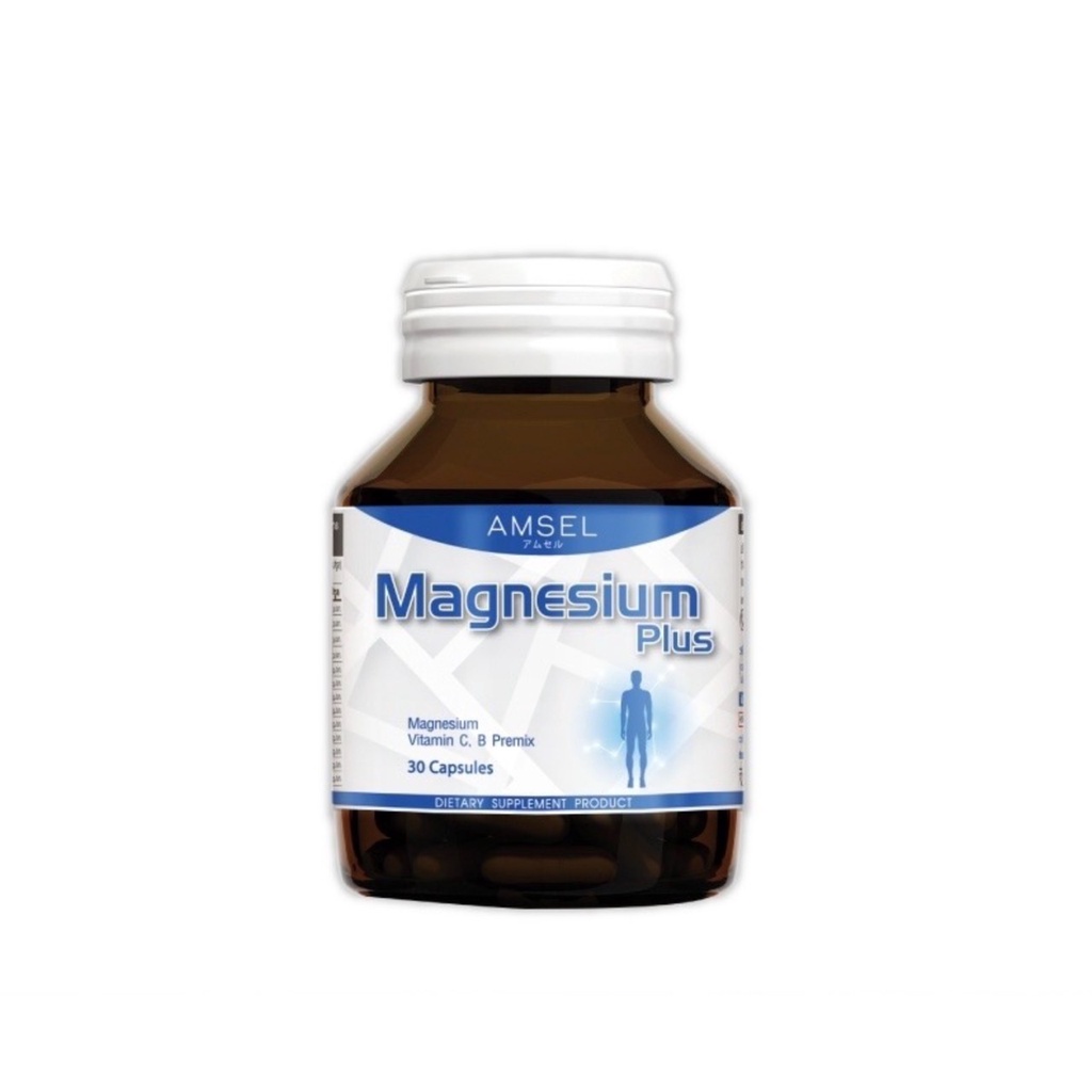 Amsel Magnesium Plus แอมเซล แมกนีเซียม พลัส ช่วยลดอาการปวดไมเกรน ตะคริว บำรุงกระดูก (30 แคปซูล) 1 ขวด