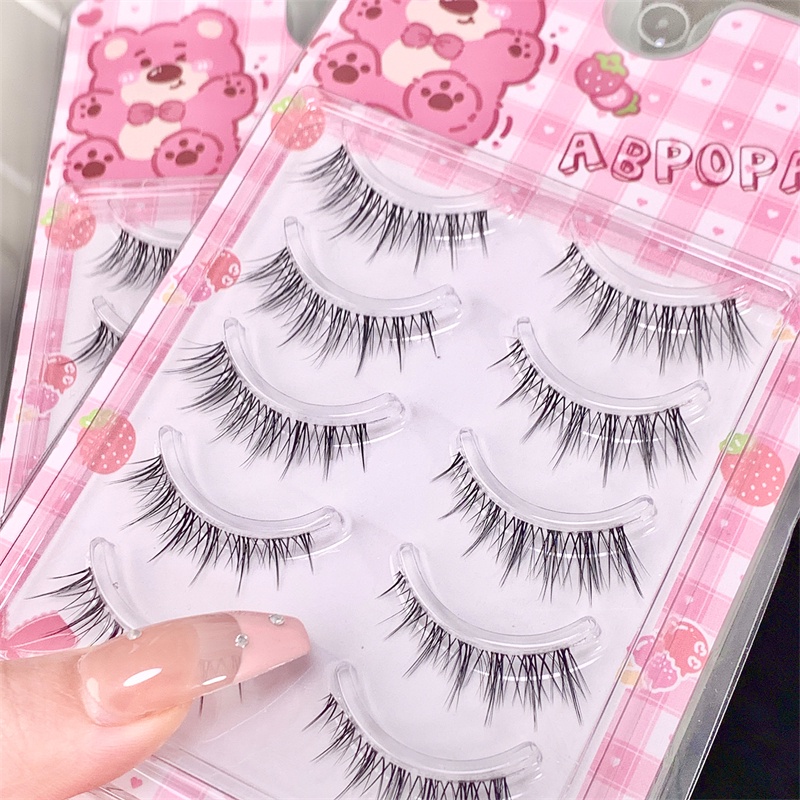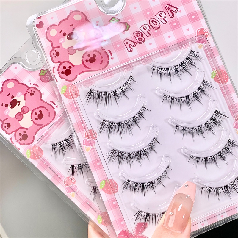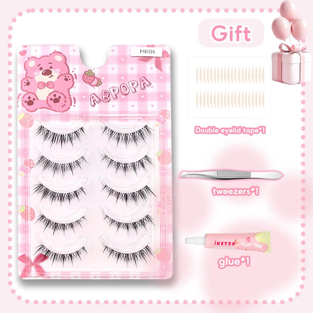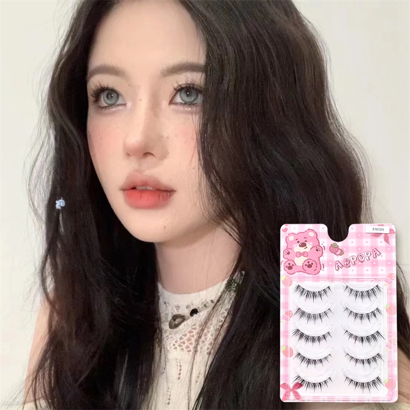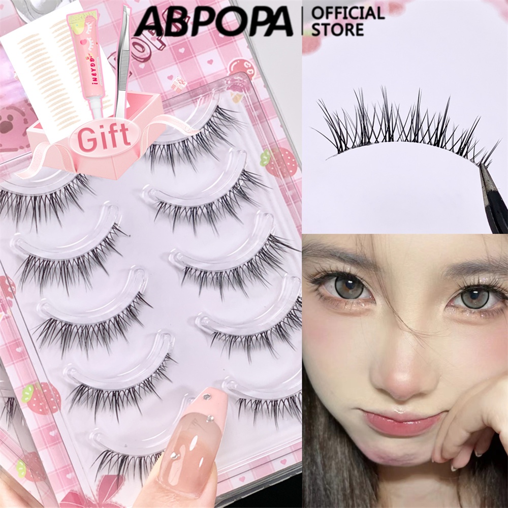 Abpopa Naturally Soft Five คู่ขนตาปลอม (ของขวัญฟรี :กาว+แหนบ+เทปตาสองชั้น) พร้อมรากถลอกสําหรับเด็กผู้หญิง