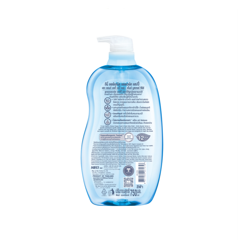 D-nee ดีนี่ ออร์แกนิค สบู่เหลวอาบและสระ For New Born Organic กลิ่นแฮปปี้ เบบี้ 750 มล.