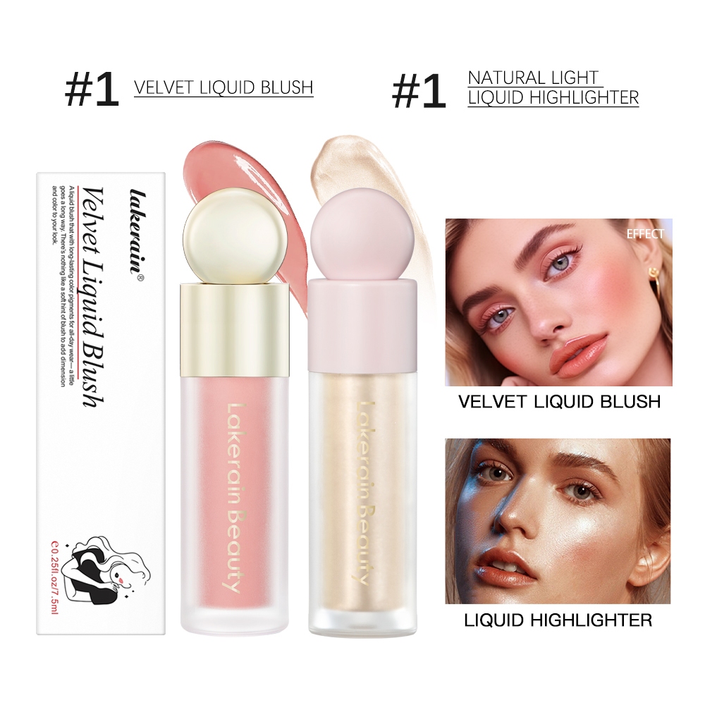 Lakerain บลัชออน เนื้อแมตต์กํามะหยี่ ความงาม ติดทนนาน + ลิควิดไฮไลท์ เครื่องสําอาง ติดทนนาน และเป็นธรรมชาติ