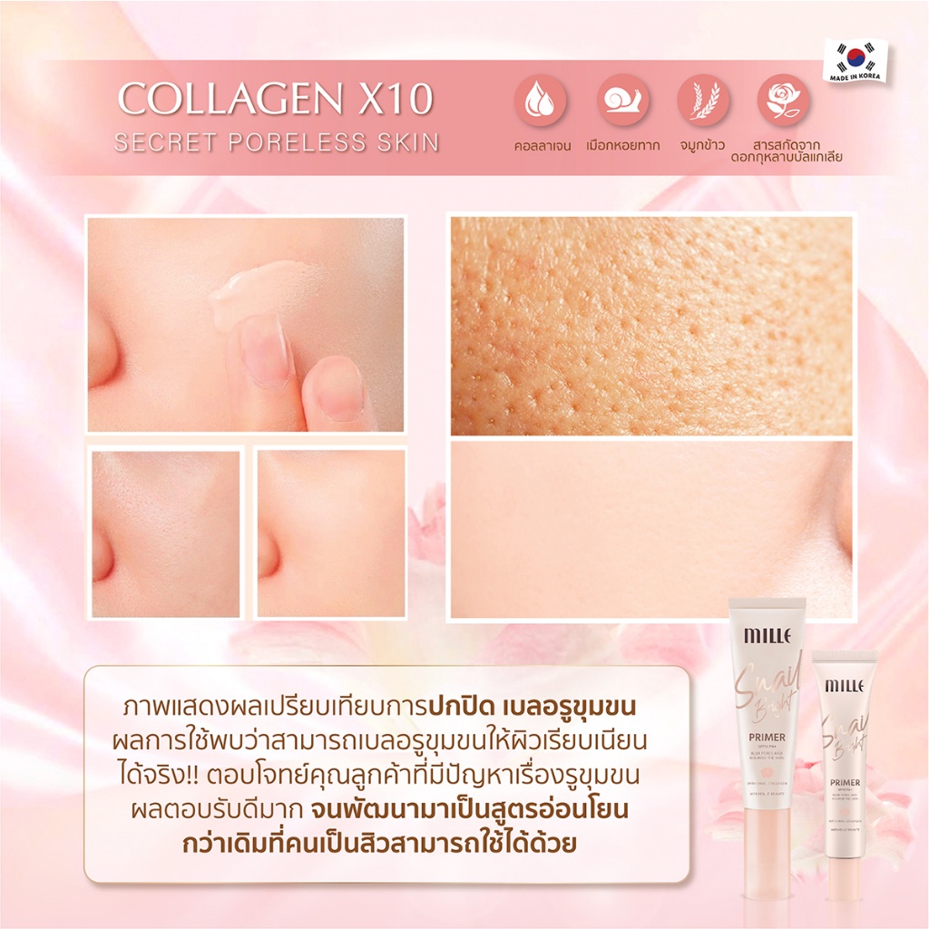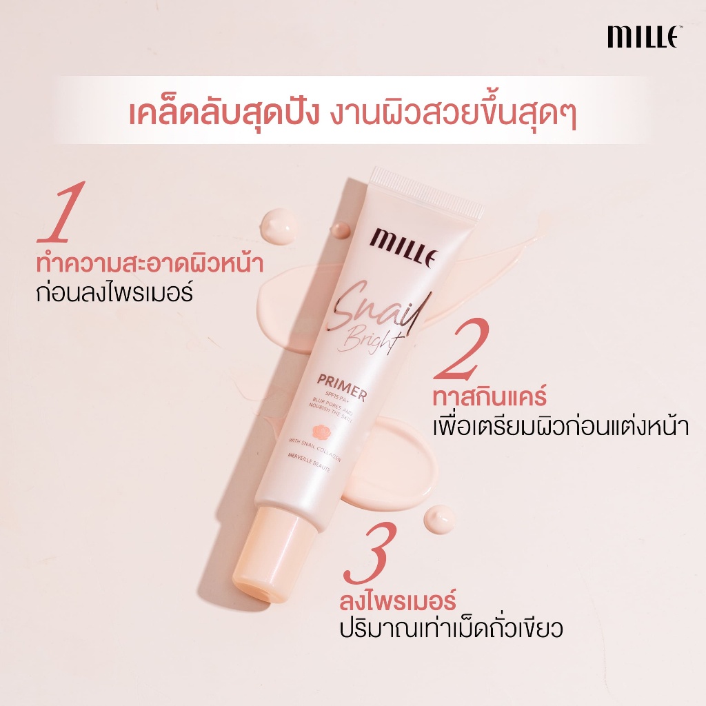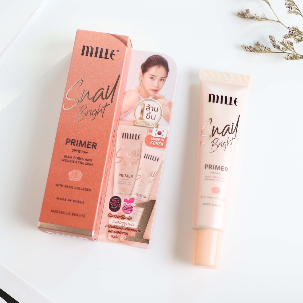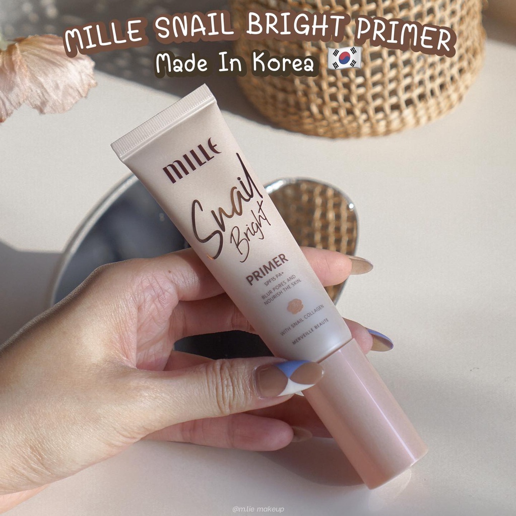 (แบบหลอด 8g.) มิลเล่ ไพรเมอร์ เบลอรูขุมขน คุมมัน ไม่อุดตัน ไม่เป็นขุย ผิวกระจ่างใส Mille Snail Bright Primer