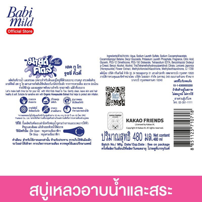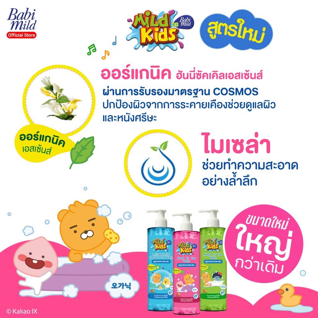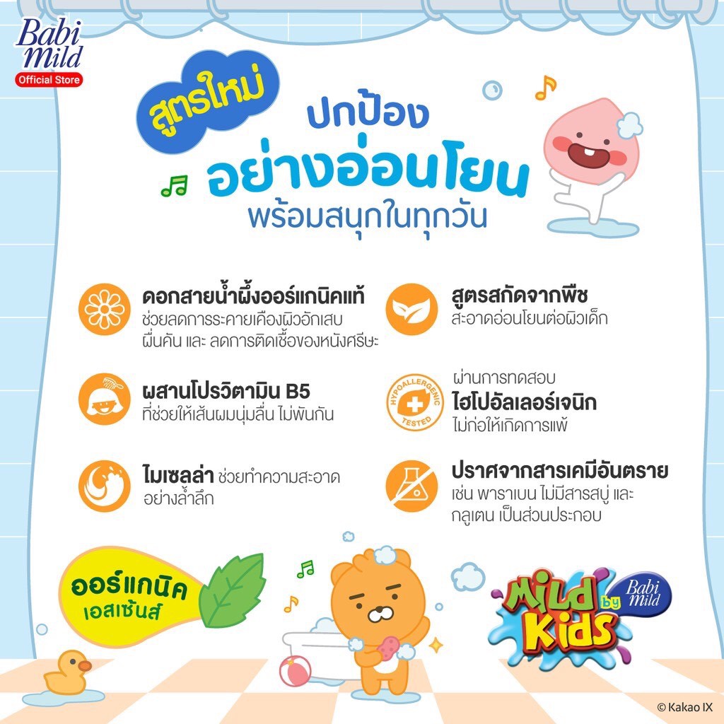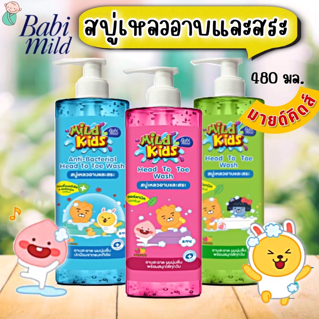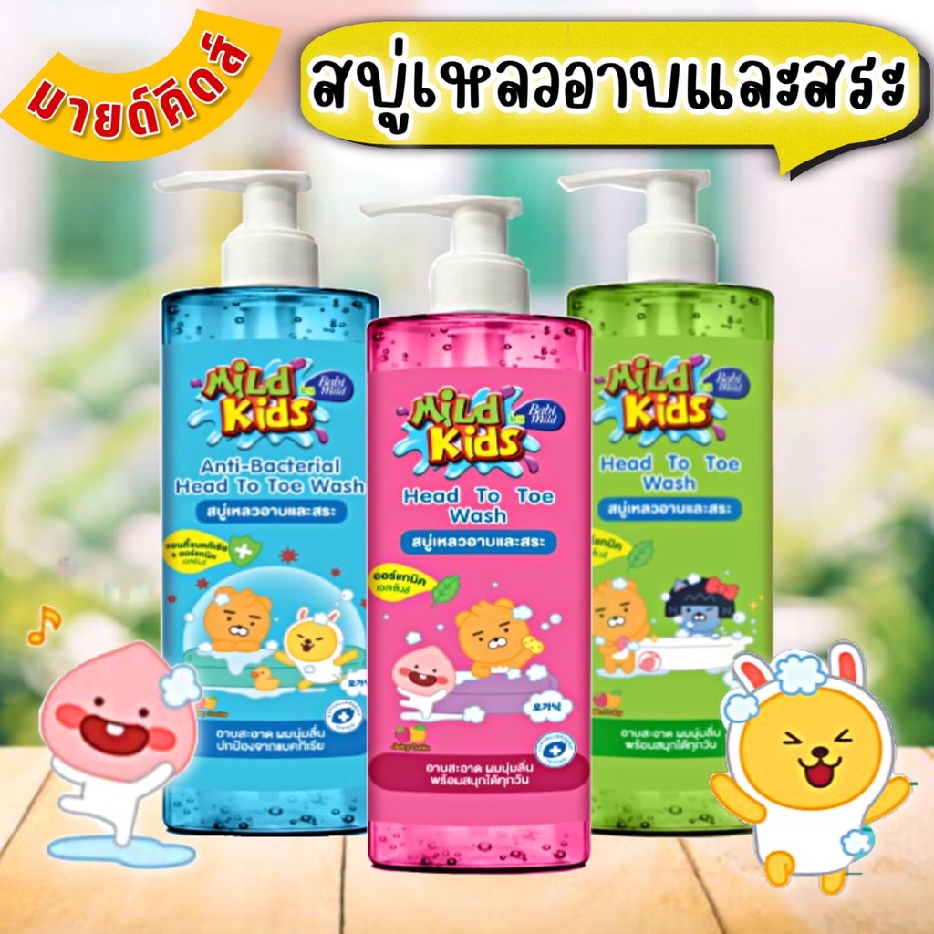 เบบี้มายด์ สบู่เหลวอาบเเละสระ (มายด์คิดส์ เฮด ทู โท) สปาร์คกลิ้ง ซันเดย์ และ จูซซี่ คิ้วตี้ 480มล.