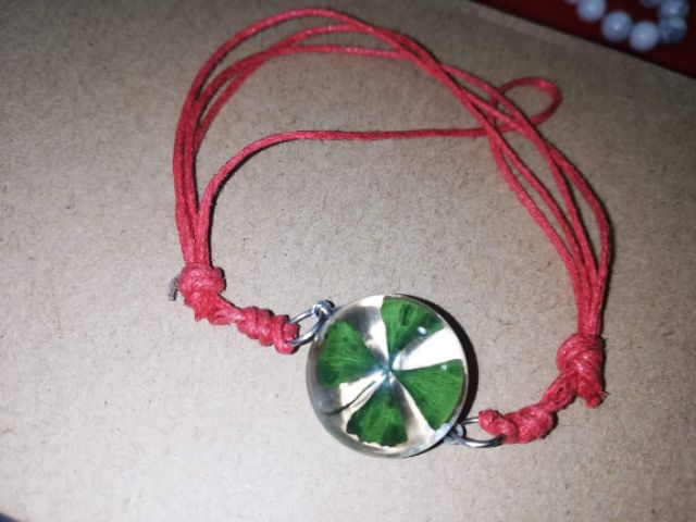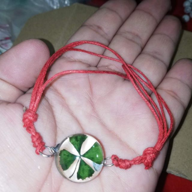 ข้อมือเชือกแดง ใบโคลเวอร์ (Clover) ใบไม้แห่งความโชคดี ปลุกเสกแล้ว