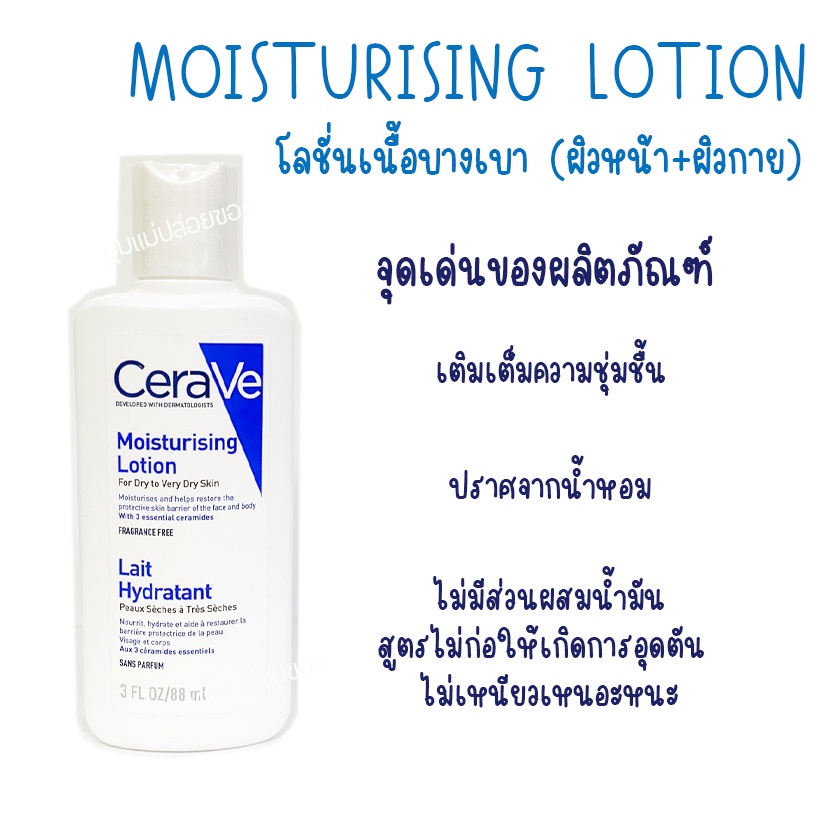 Cerave Lotion มอยเจอร์ไรเซอร์ โลชั่นบำรุงผิว เนื้อบางเบา 88 มล. สำหรับผิวธรรมดา-ผิวมัน-ผิวแห้ง