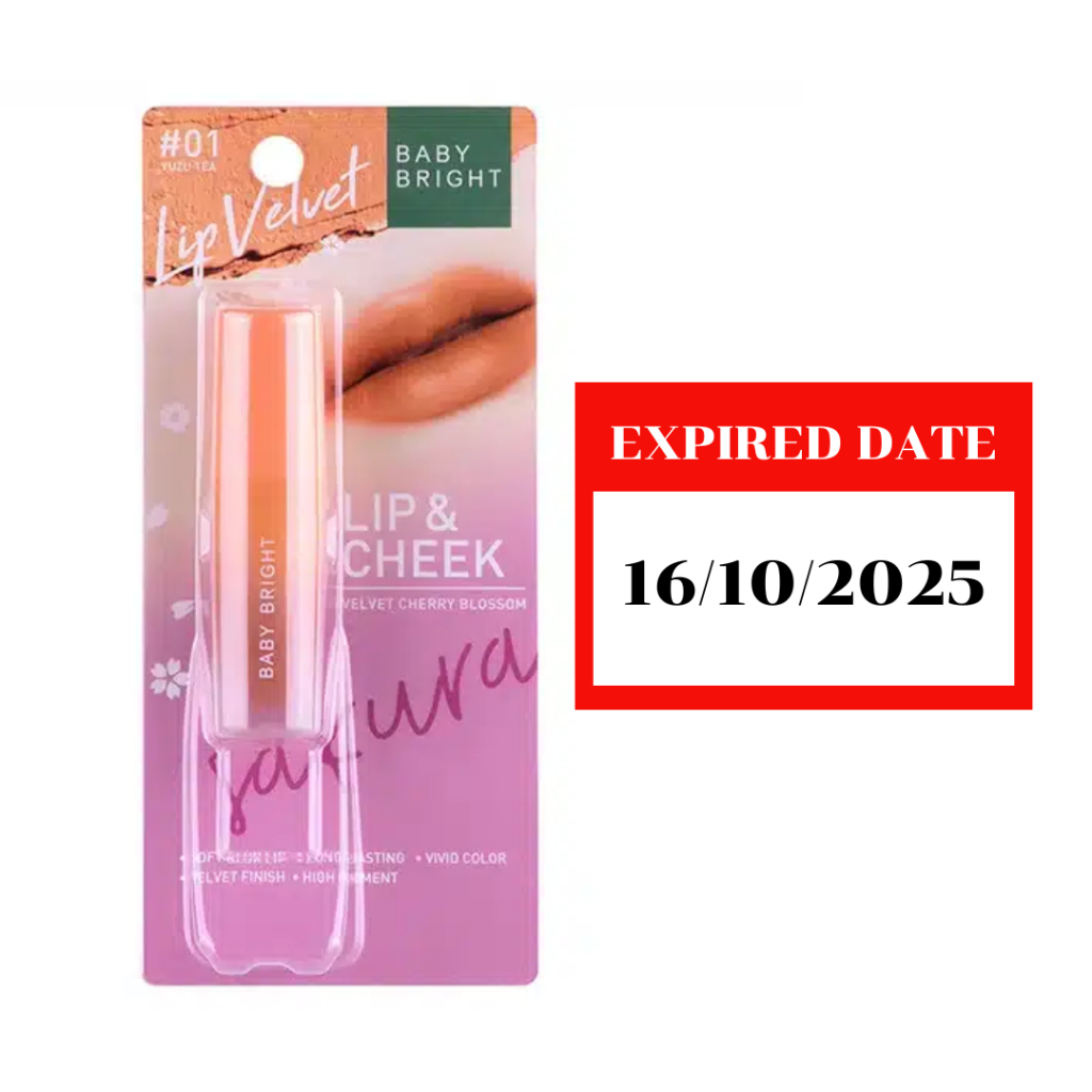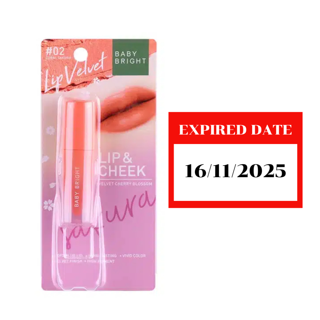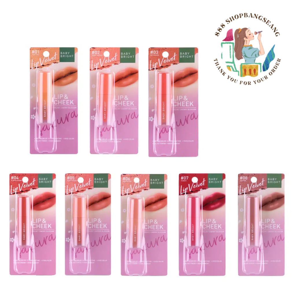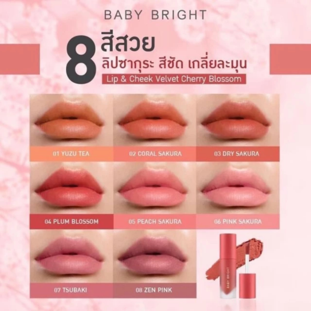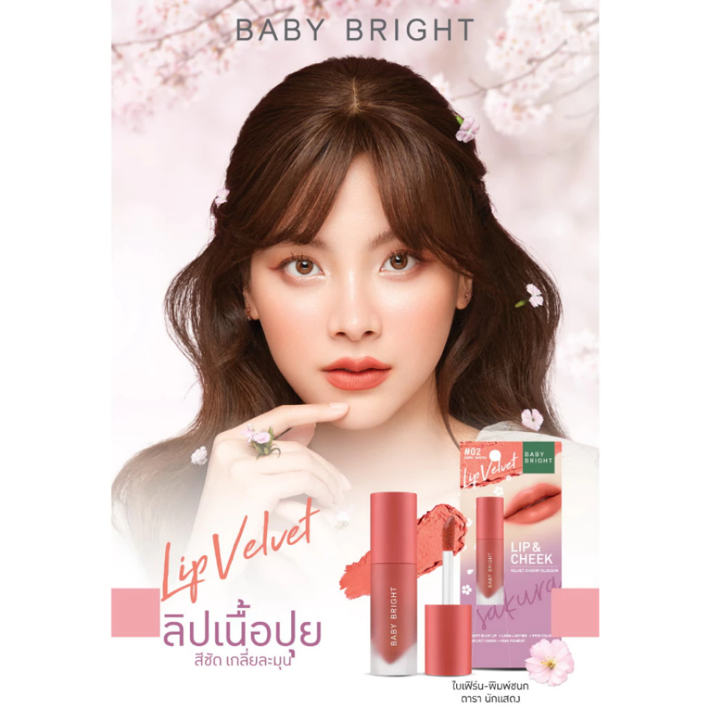 BABY BRIGHT lip&cheek velvet cherry blossom 2.4G ลิปแอนด์ชีคเวลเวทเชอร์รี่บลอสซั่ม เบบี้ไบร์ท