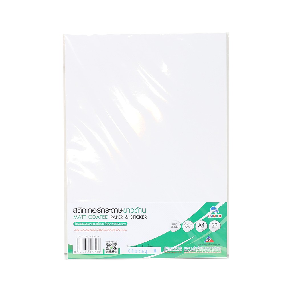 PLANGO สติ๊กเกอร์กระดาษ A4 PP ขาวด้าน รุ่น A404 (แพ็ค 20 แผ่น) |ZWG|