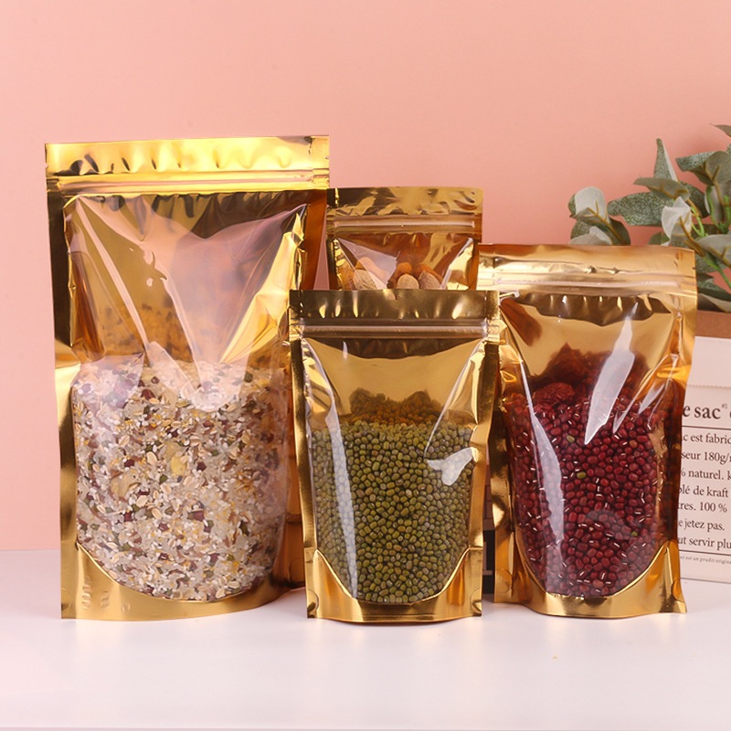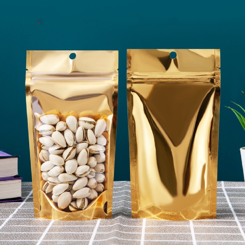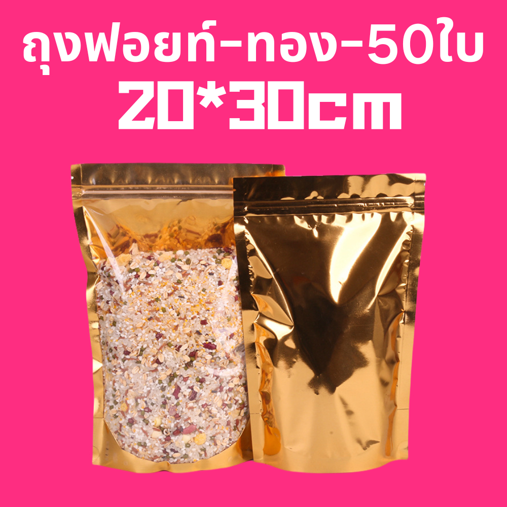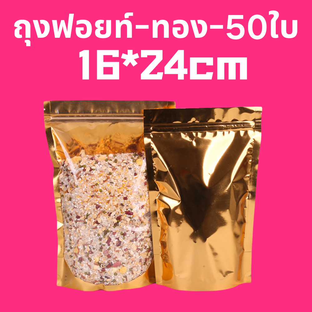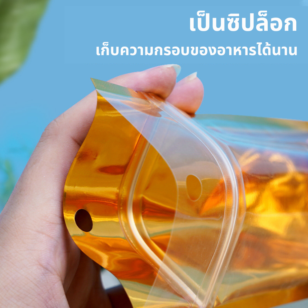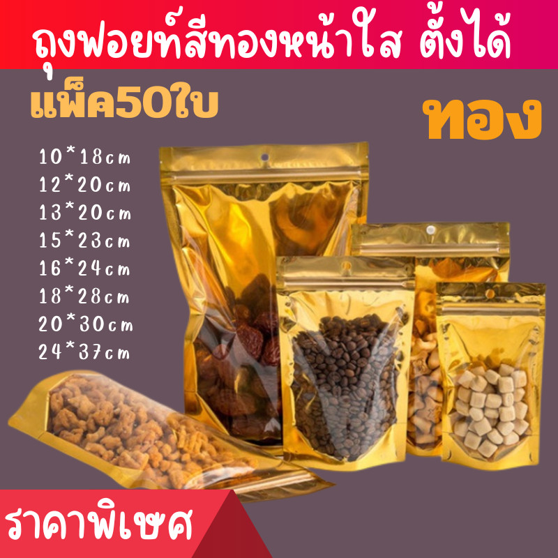 พร้อมส่ง9.9💕ถุงฟอยด์สีทอง แพ็คละ50ใบ ถุงรูดตั้งได้ ด้านหน้าใสหลังทอง ถุงฟอยด์สีทอง ถุงขนม ซองขนม