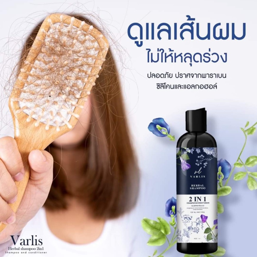 [แท้/พร้อมส่ง] แชมพูวาริส 2in1 Varlis วาริส แชมพูครีมนวดในขวดเดียว แชมพูสมุนไพร อัญชัน ขวดม่วง