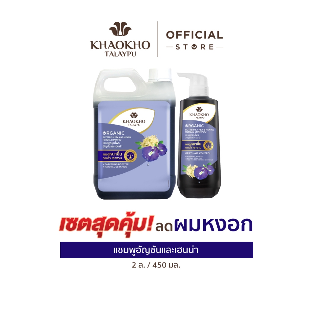 [เซตคู่สุดคุ้ม] Khaokho Talaypu เขาค้อทะเลภู แชมพู + แกลลอนรีฟิล อัญชันและเฮนน่า (450 + 2,000 มล.)