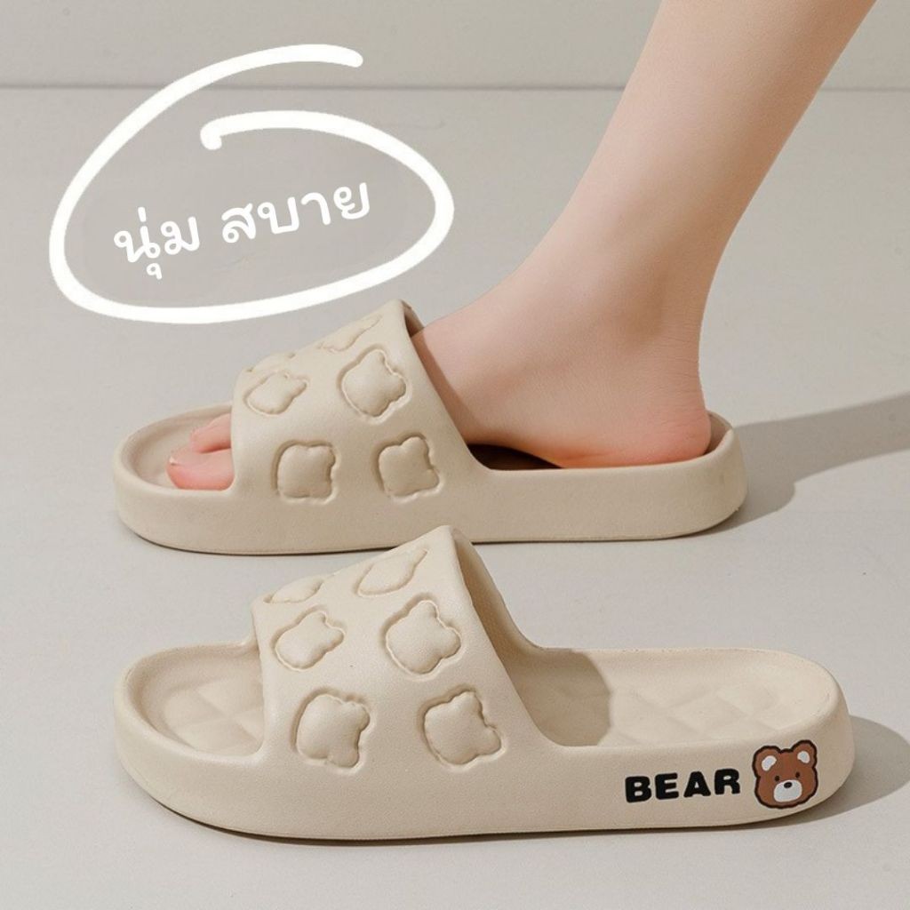 🩴KAIDEE🩴รองเท้าแตะ น้องหมีน่ารัก พื้ นนุ่มพิเศษ เหมาะสำหรับใส่ในบ้าน และห้องน้ำ สไตล์เรียบง่าย