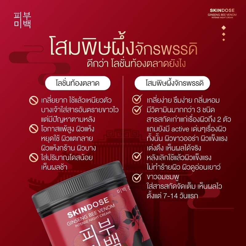 [ส่งฟรี พร้อมส่ง‼️]🐝โสมพิษผึ้ง โสมจักรพรรดิ โสมพิษผึ้งจักรพรรดิ Skindose Ginseng Bee Venom ลดรอยแตกลาย ลดรอยสิวที่หลัง