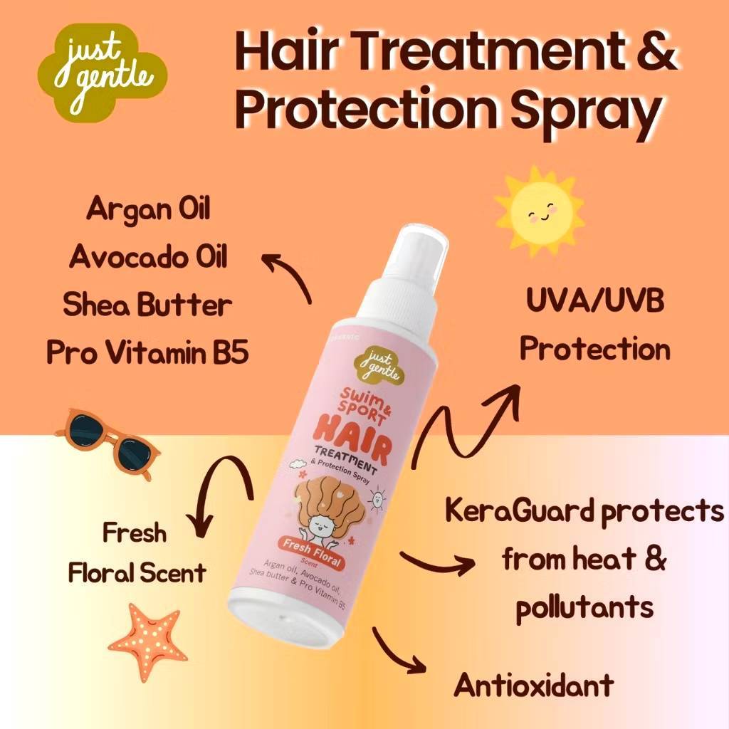 Just Gentle สเปรย์ปกป้องและบำรุงเสันผม Kids Swim & Sport Hair Treatment & Protection Spray - Fresh Floral scent (100ml)