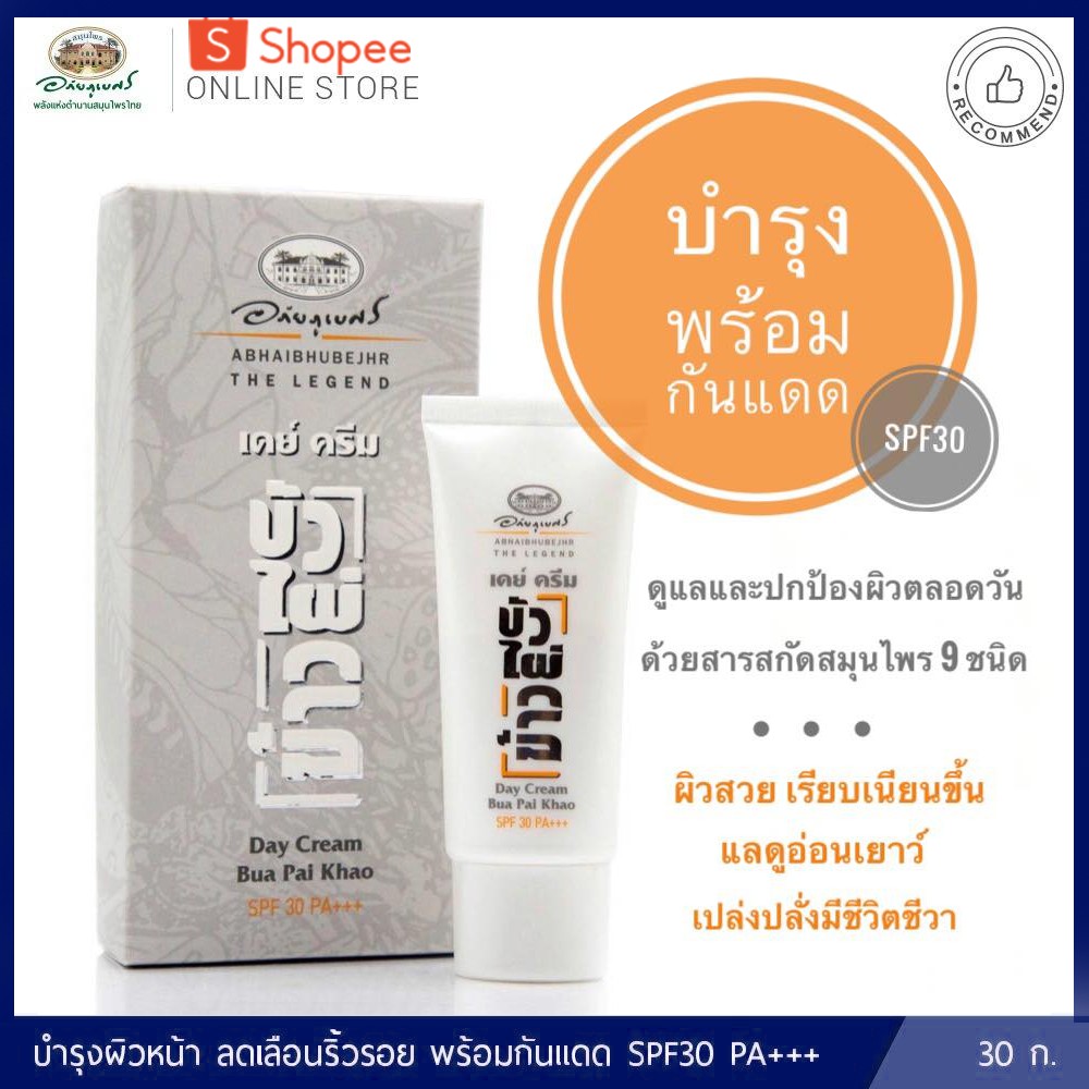 💛เดย์ครีม บัว ไผ่ ข้าว SPF 30 🌼อภัยภูเบศร ✅(ผลิตใหม่ล่าสุด)✅ขนาด 30 กรัม