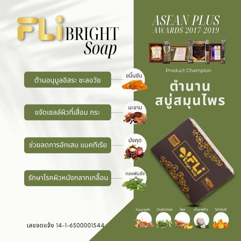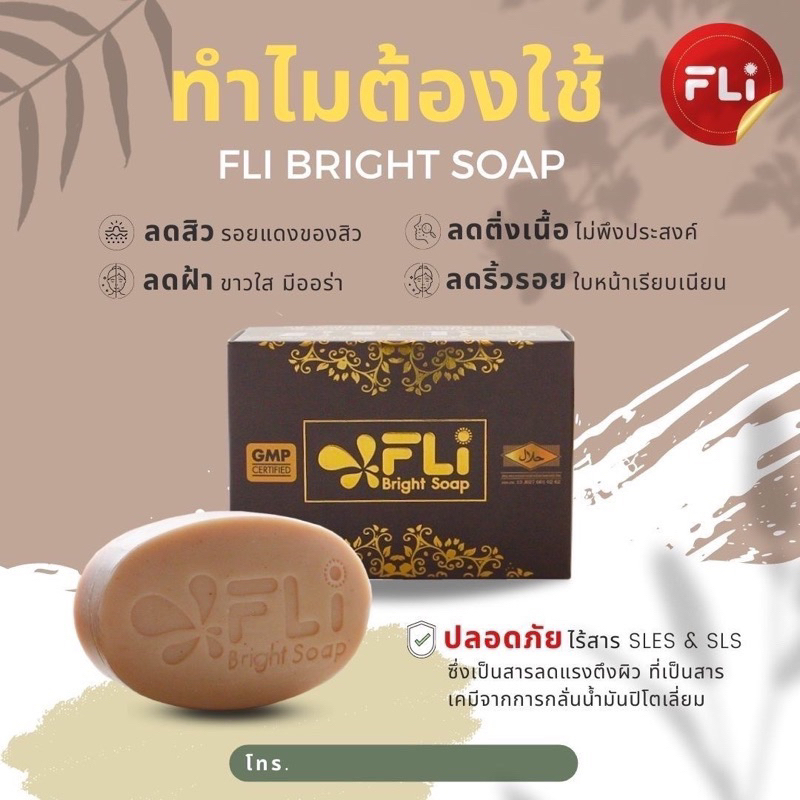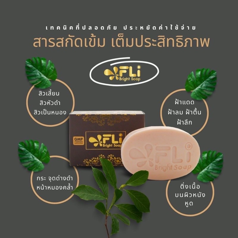 [ของแท้ ส่งฟรี‼️]สบู่FLI Bright Soap โปร2แถม1 สบู่สมุนไพรไทย กำจัดติ่งเนื้อ หูด ผิวขาวกระจ่างใส ลดสิว กระ ฝ้า กลิ่นหอม