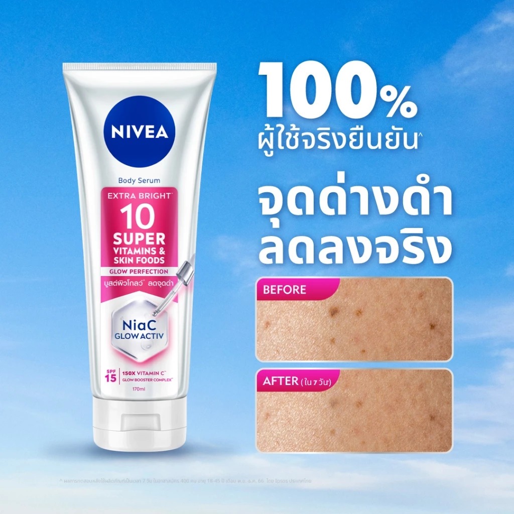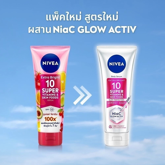 NIVEA นีเวีย เอ็กซ์ตร้า ไบรท์ เท็นซูเปอร์ วิตามิน&สกิน ฟู้ด เซรั่ม 300 มล. + 300 มล.