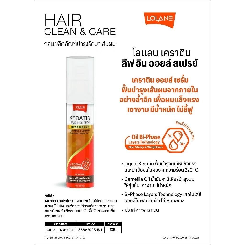 โลแลน เคราติน ลิฟ อิน ออยล์ สเปรย์ Lolane Keratin Leave In Oil Spray โลแลน สเปรย์บำรุงผม ลดการชี้ฟู ปริมาณ140มล.