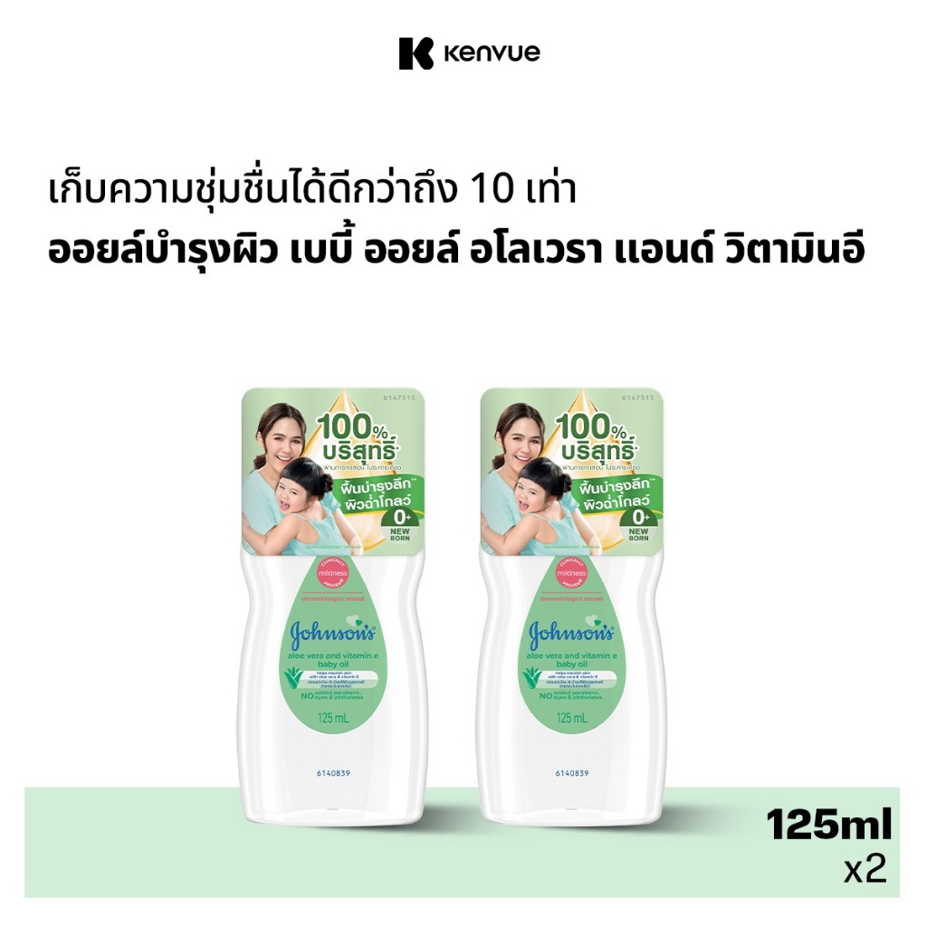 [แพ็คคู่] จอห์นสัน เบบี้ ออยล์ อโลเวรา แอนด์ วิตามินอี 125 มล. J&J Johnson's Baby Oil Aloe Vera Vitamin E 125 ml x2