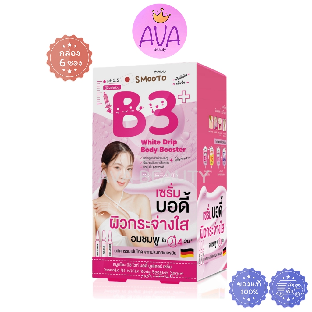 (6ซอง/กล่อง) Smooto Drip Body Booster สมูทโตะ บอดี้ บูสเตอร์ เซรั่ม / VC / AHA / B3 โลชั่นทาตัว