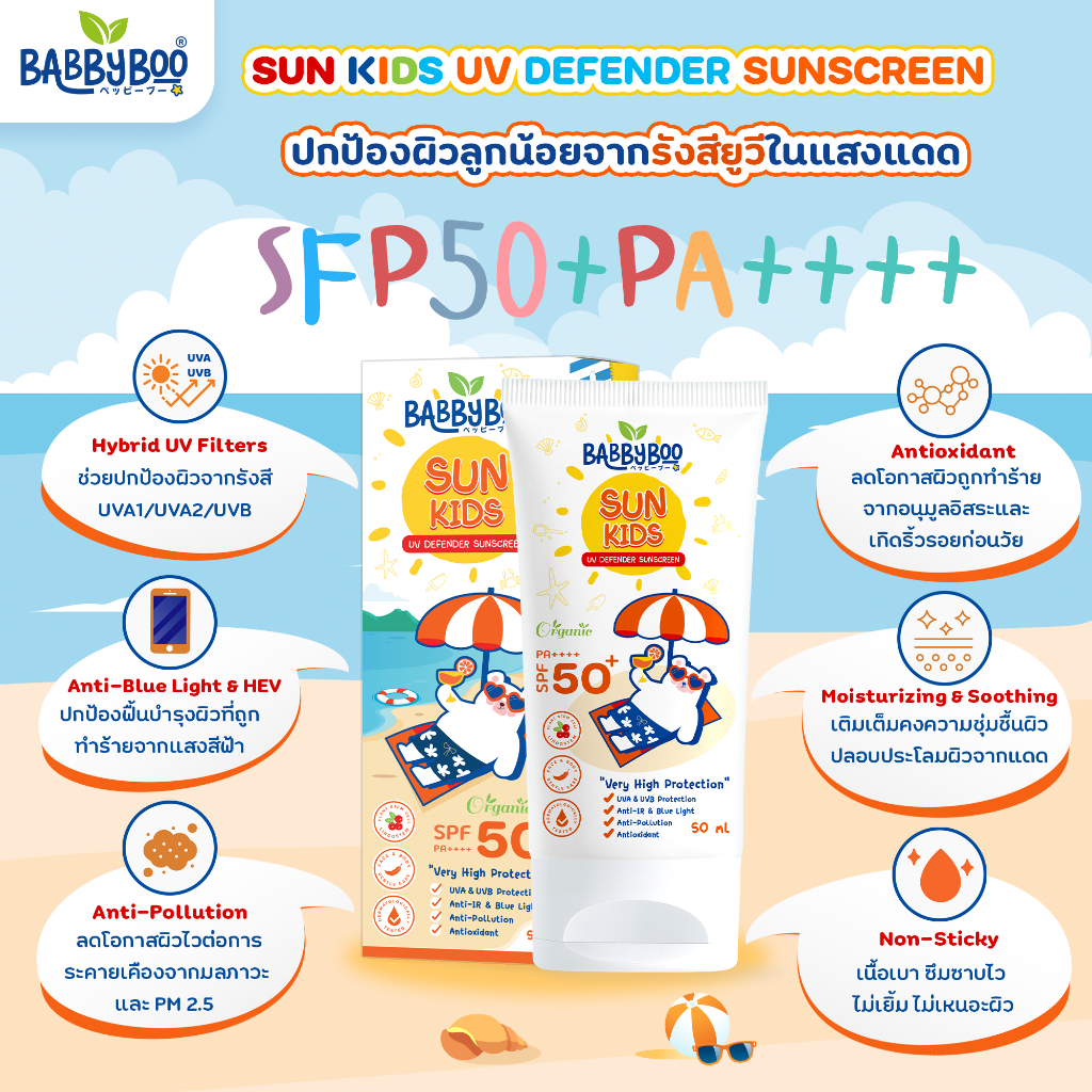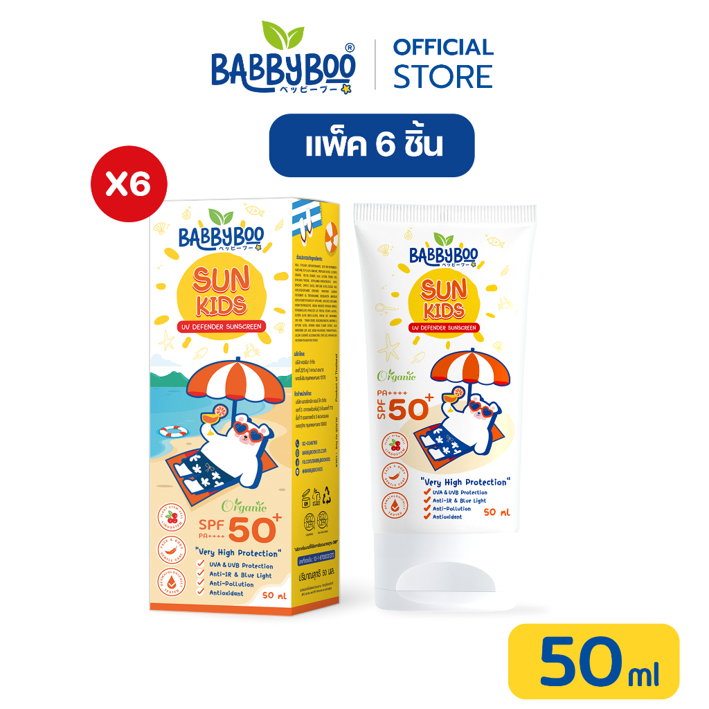 [Set 6 ชิ้น] ครีมกันแดดสำหรับเด็ก BABBYBOO ป้องกันแสงแดด UVA/UVB แสงสีฟ้า SPF 50+ PA++++ ทาหน้าทาตัว