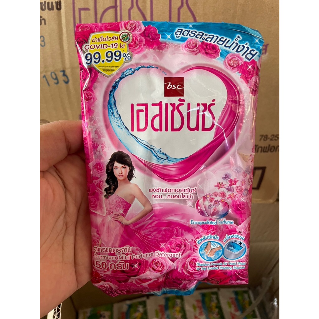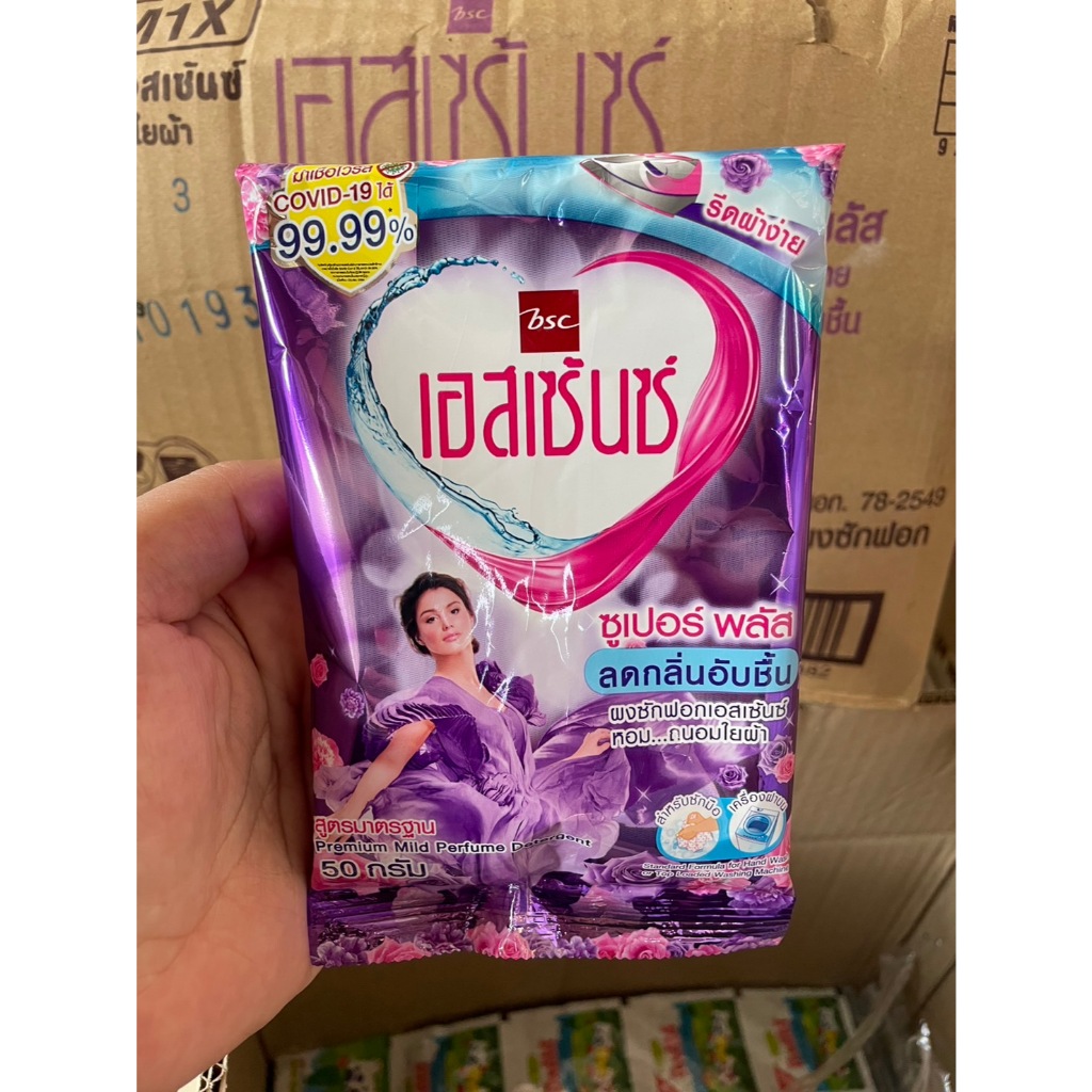 ผงซักฟอก essence 40-50g 3 สูตร หอมมาก ลดกลิ่นอับชื้น รีดผ้าง่าย