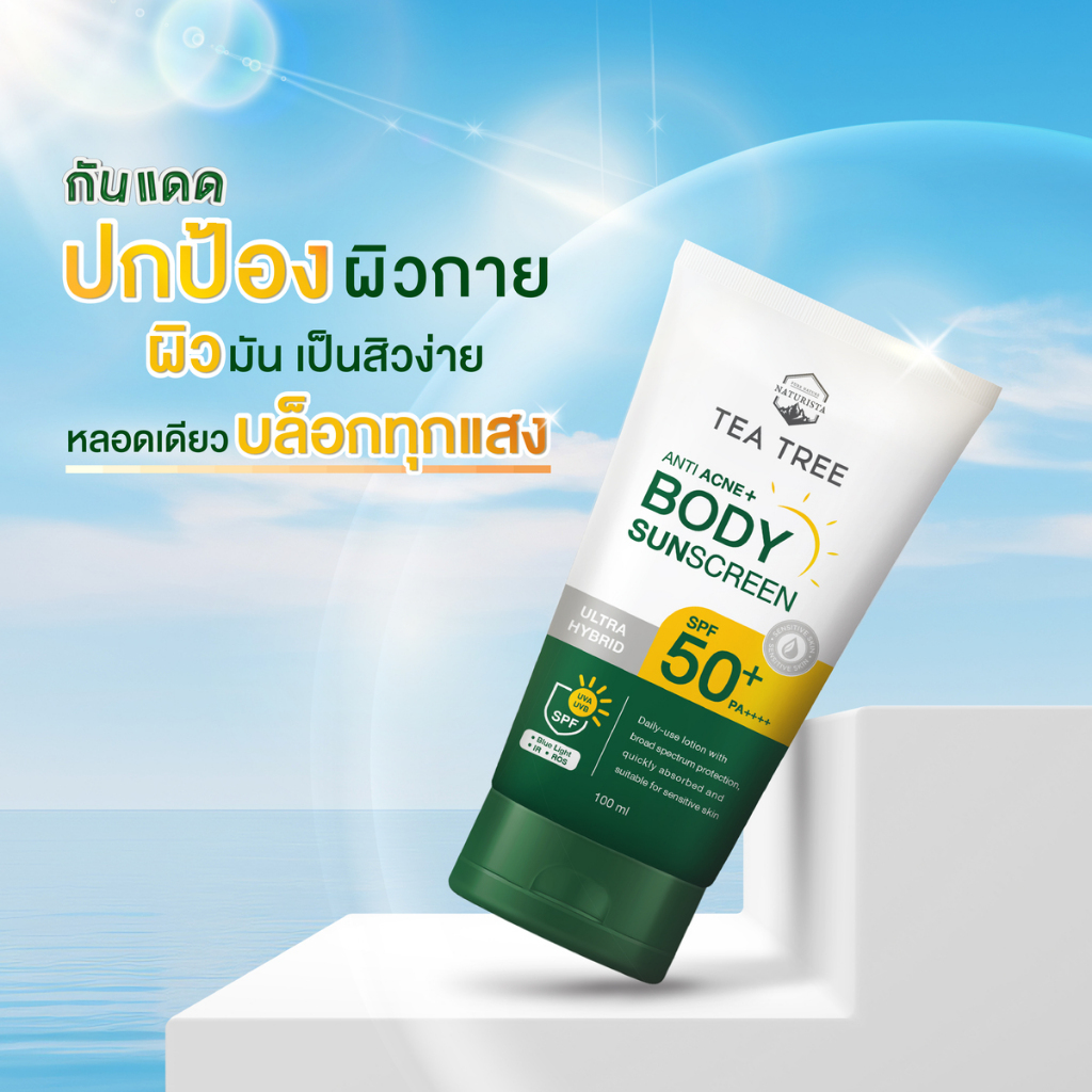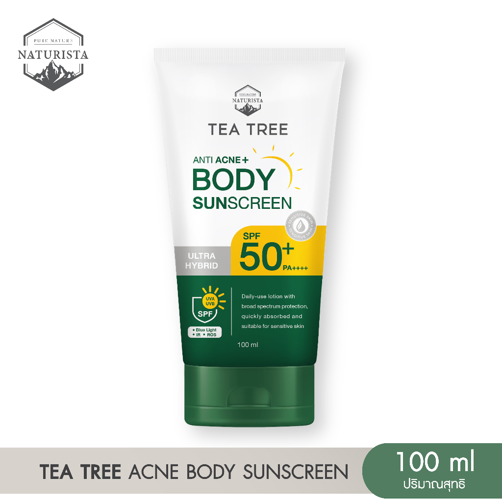 ใหม ่! Naturista ครีมกันแดดทีทรี สำหรับผิวกาย TEA TREE ANTI ACNE ULTRA HYBRID BODY SUNSCREEN SPF50+ PA++++