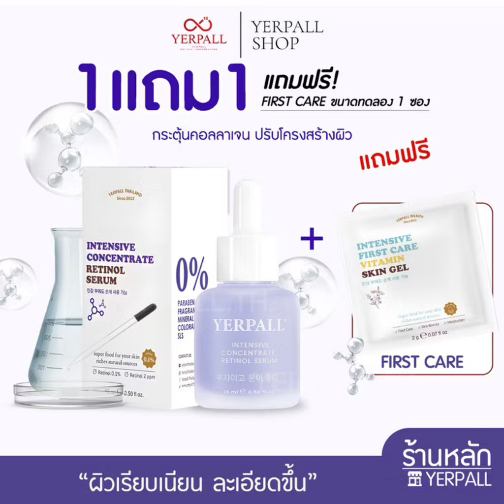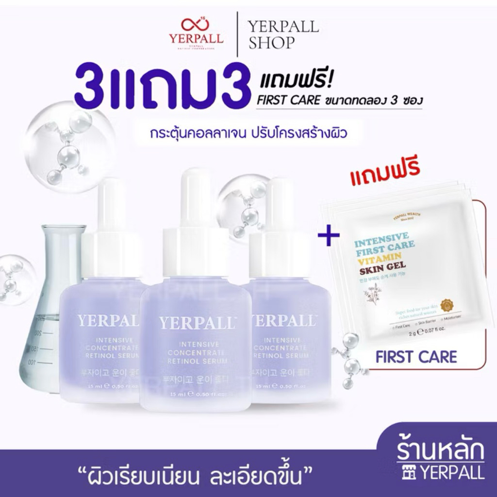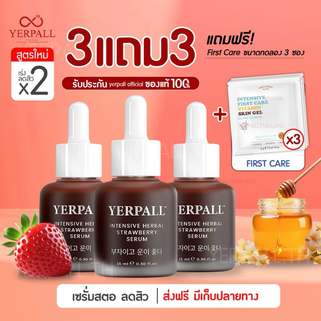 YERPALL เซรั่มสตอ & เรตินอล แบรนด์เยอเพล YERPALL INTENSIVE STRAWBERRY / RETINOL หน้าใสลดรอยสิว 15ml.