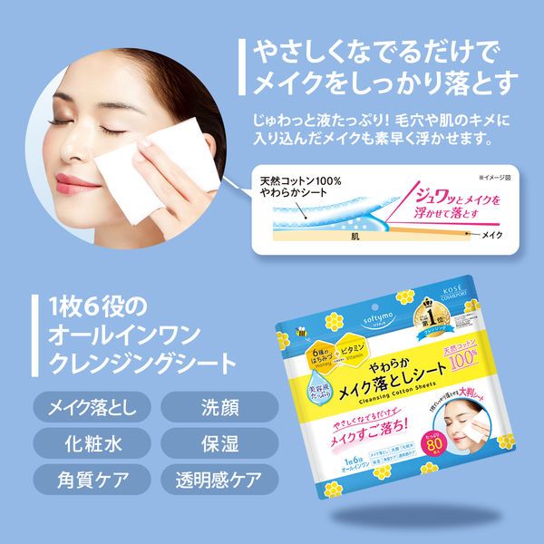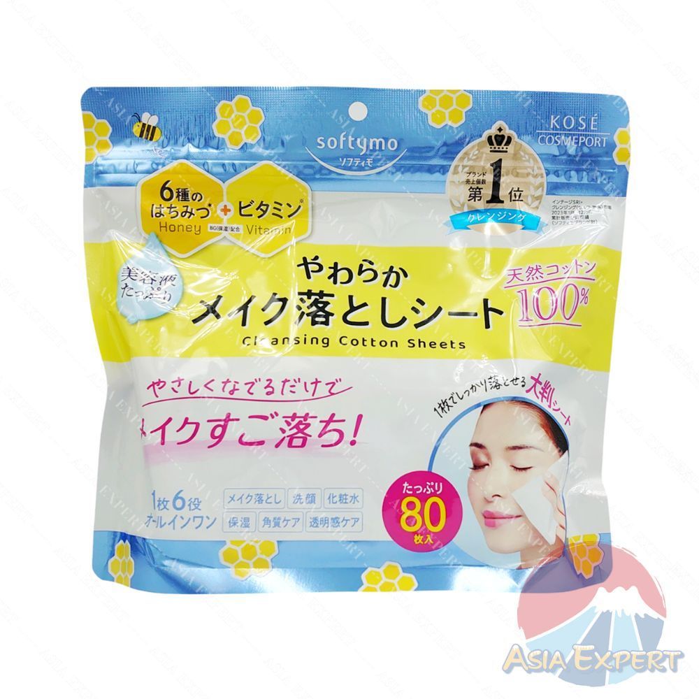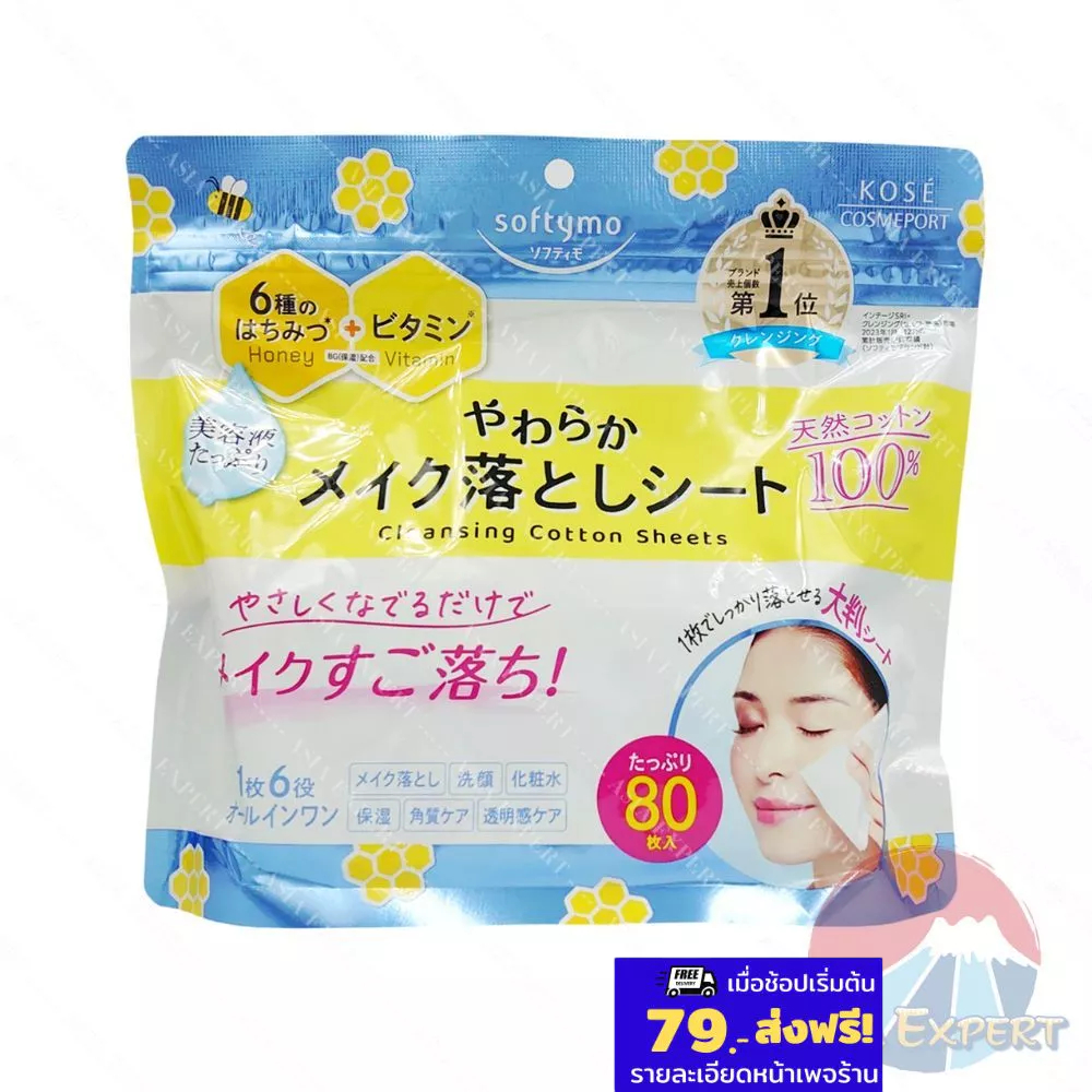 KOSE softymo All-in-one Cleansing Cotton Sheets 80แผ่น แผ่นเช็คเครื่องสำอาง คลีนซิ่งชีท
